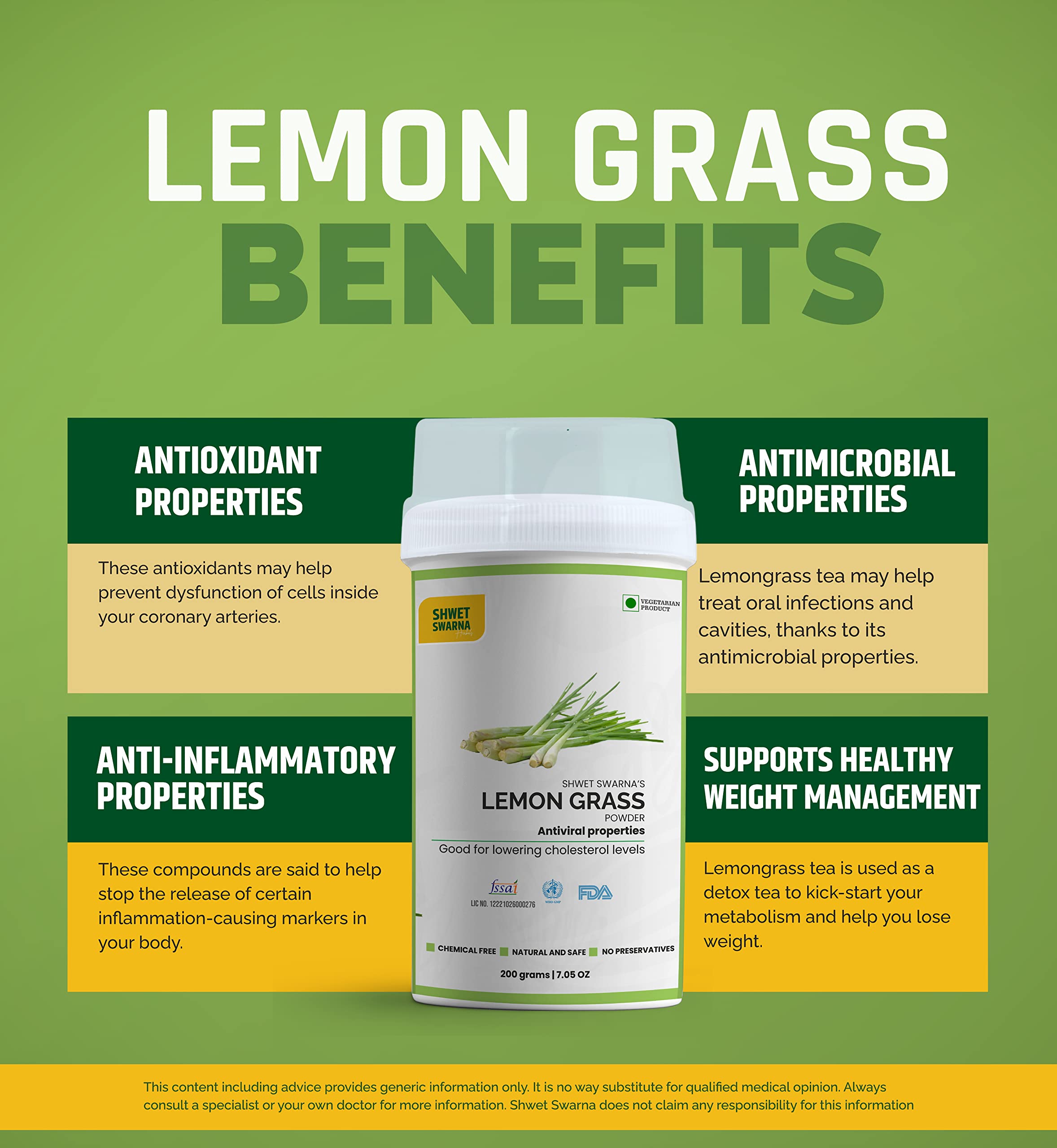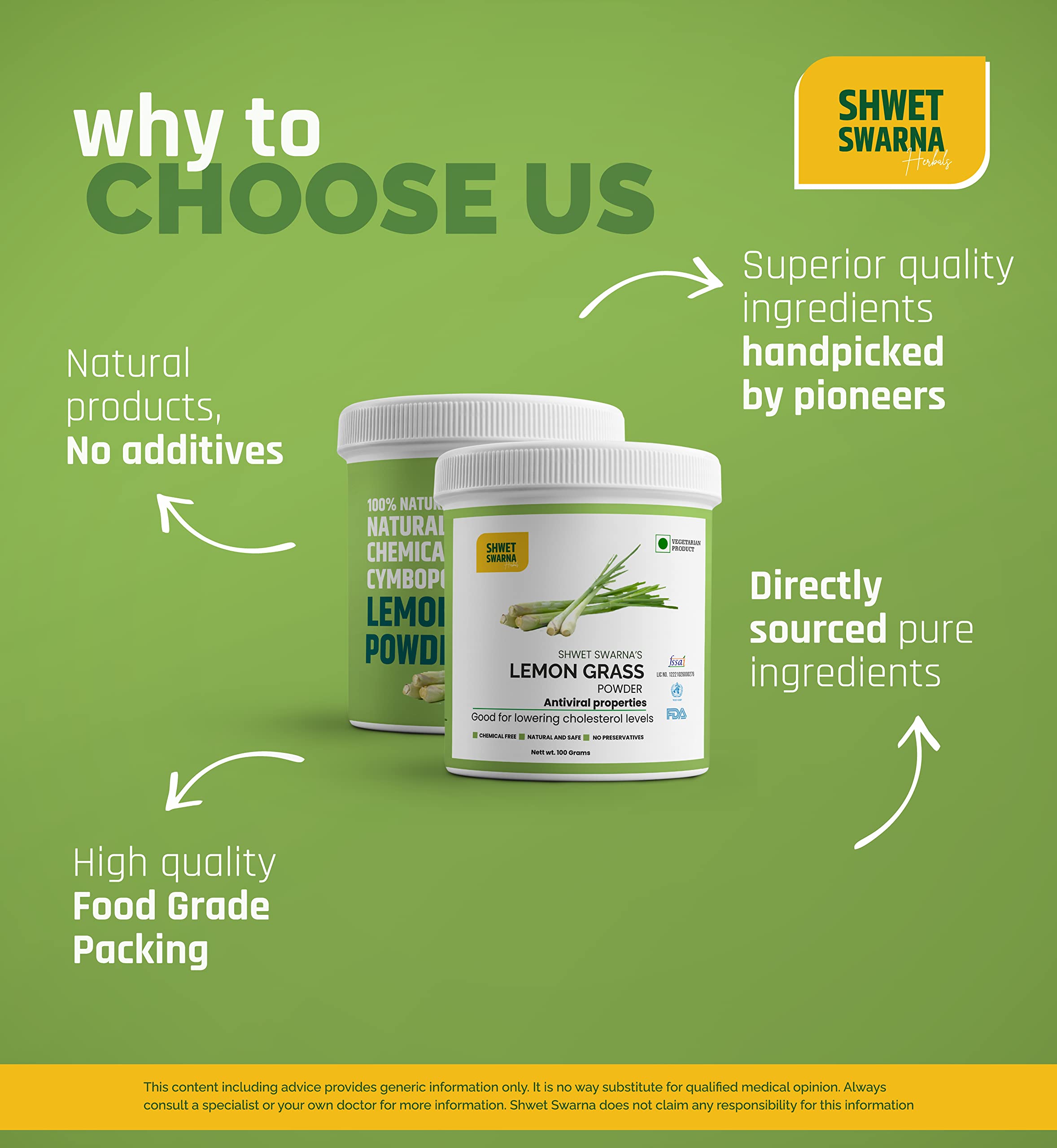 SHWET SWARNA LEMON GRASS Powder Natural & Cymbopogon citratus Powder Herbal Health Supplement with Antiviral properties 100 grm.