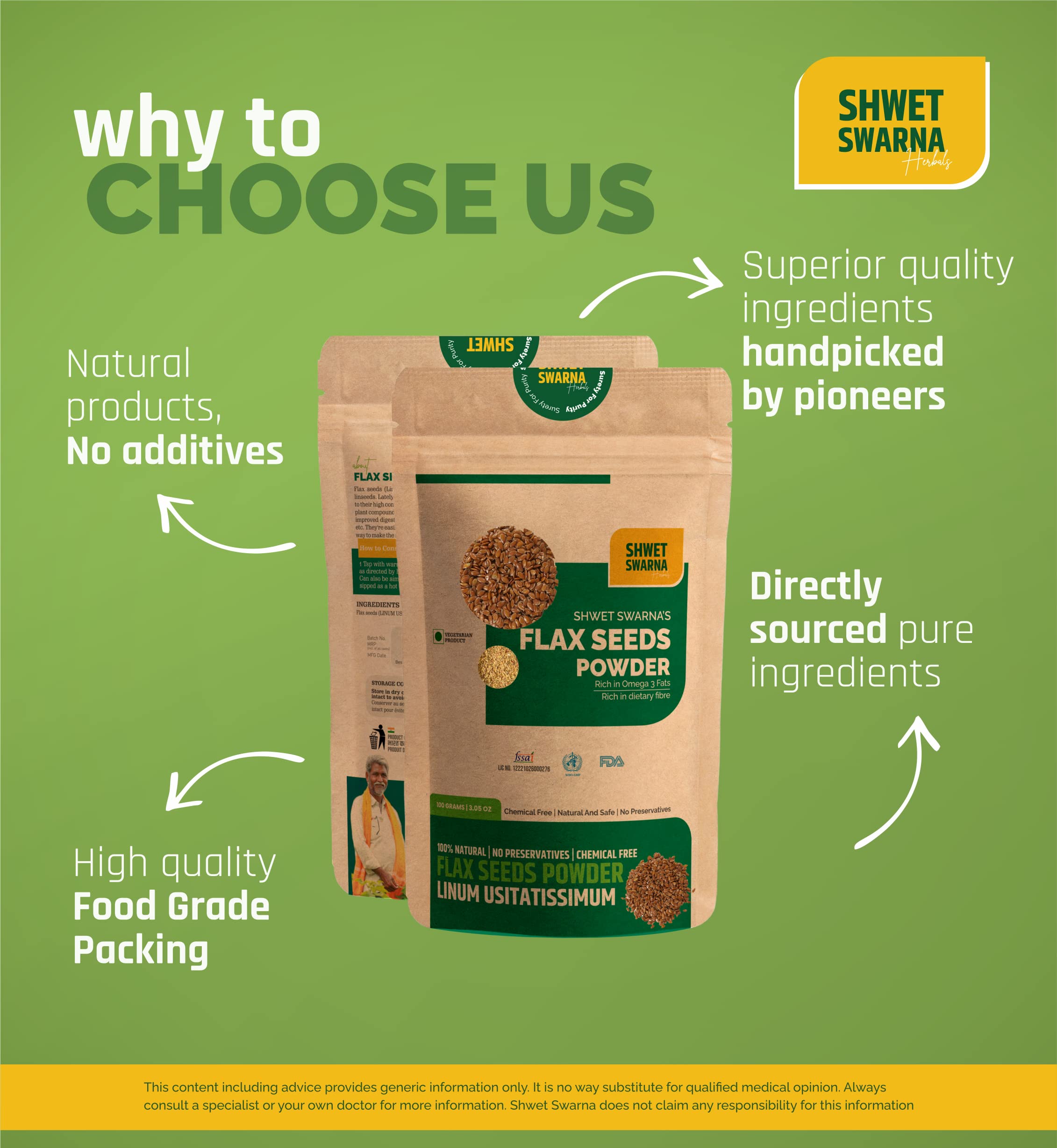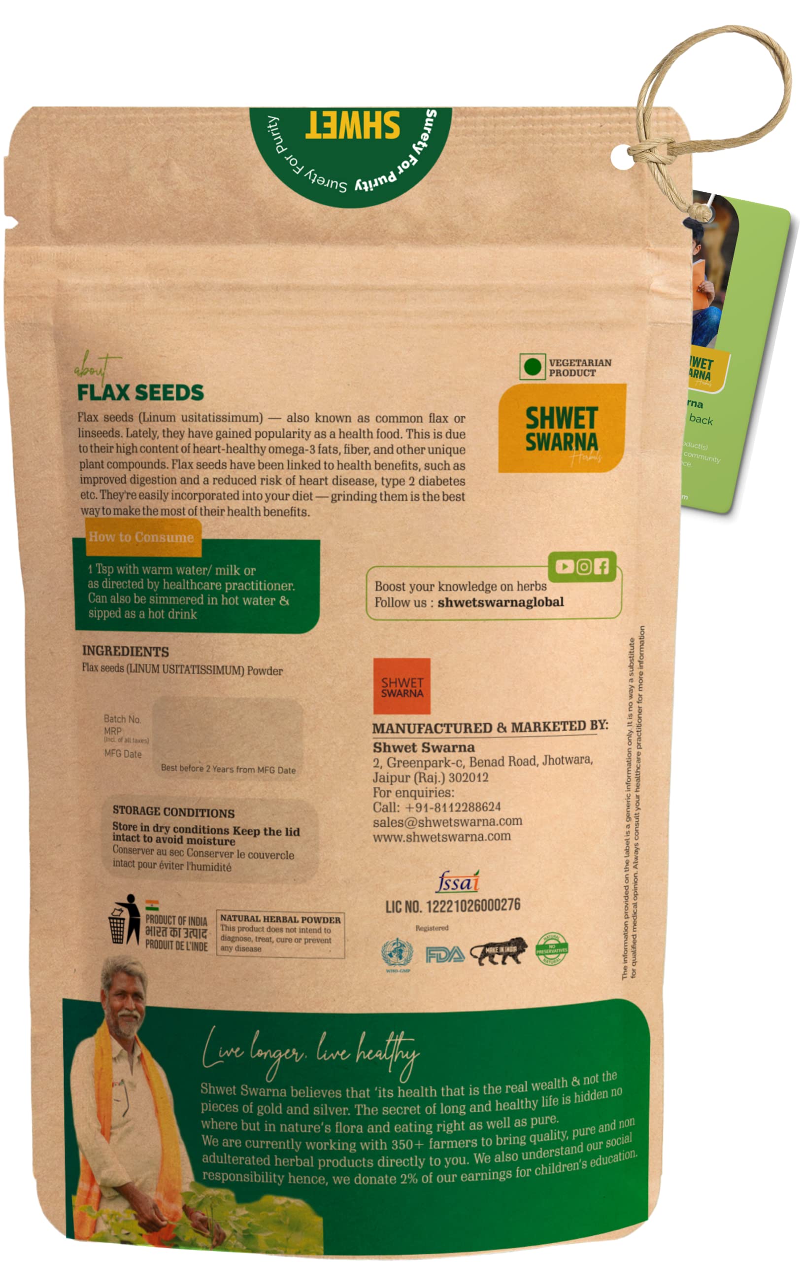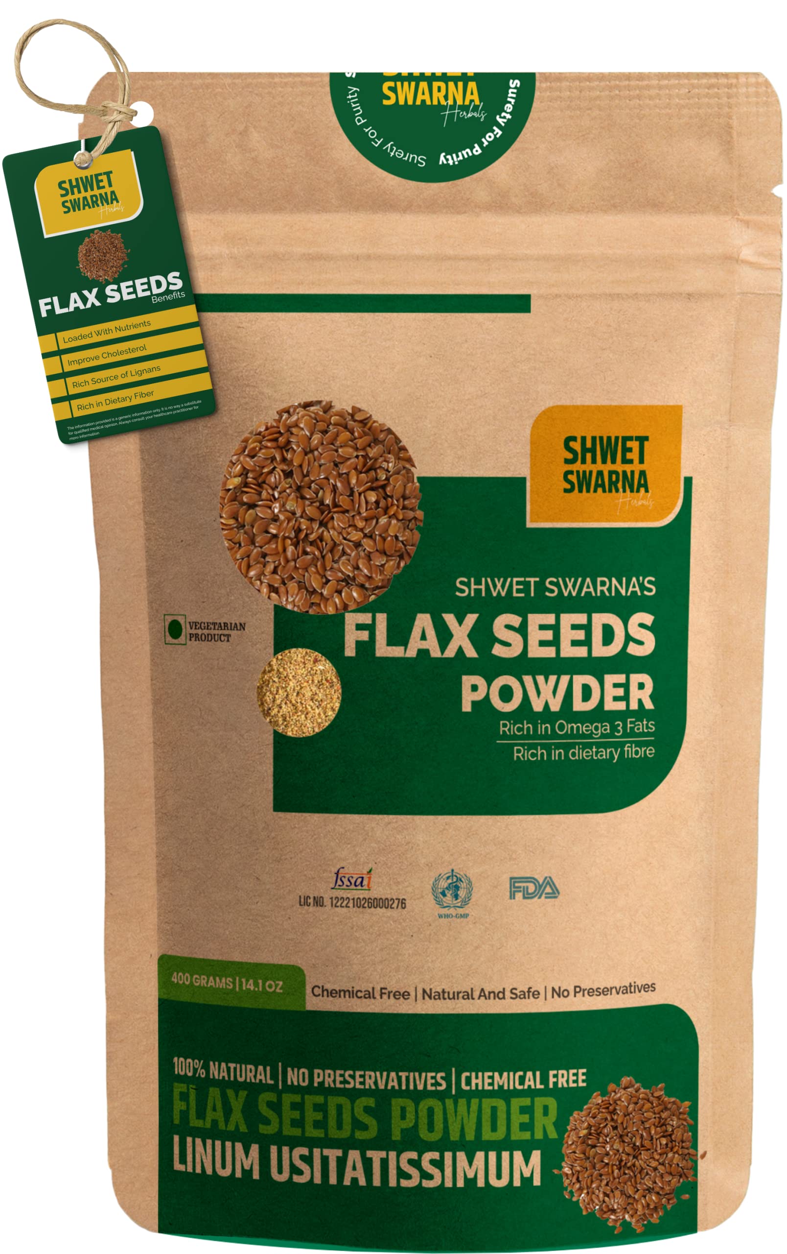 SHWET SWARNA Pure Natural Flax Seeds Powder Alsi Powder Herbal Ayurvedic Health Supplement Product 400GM