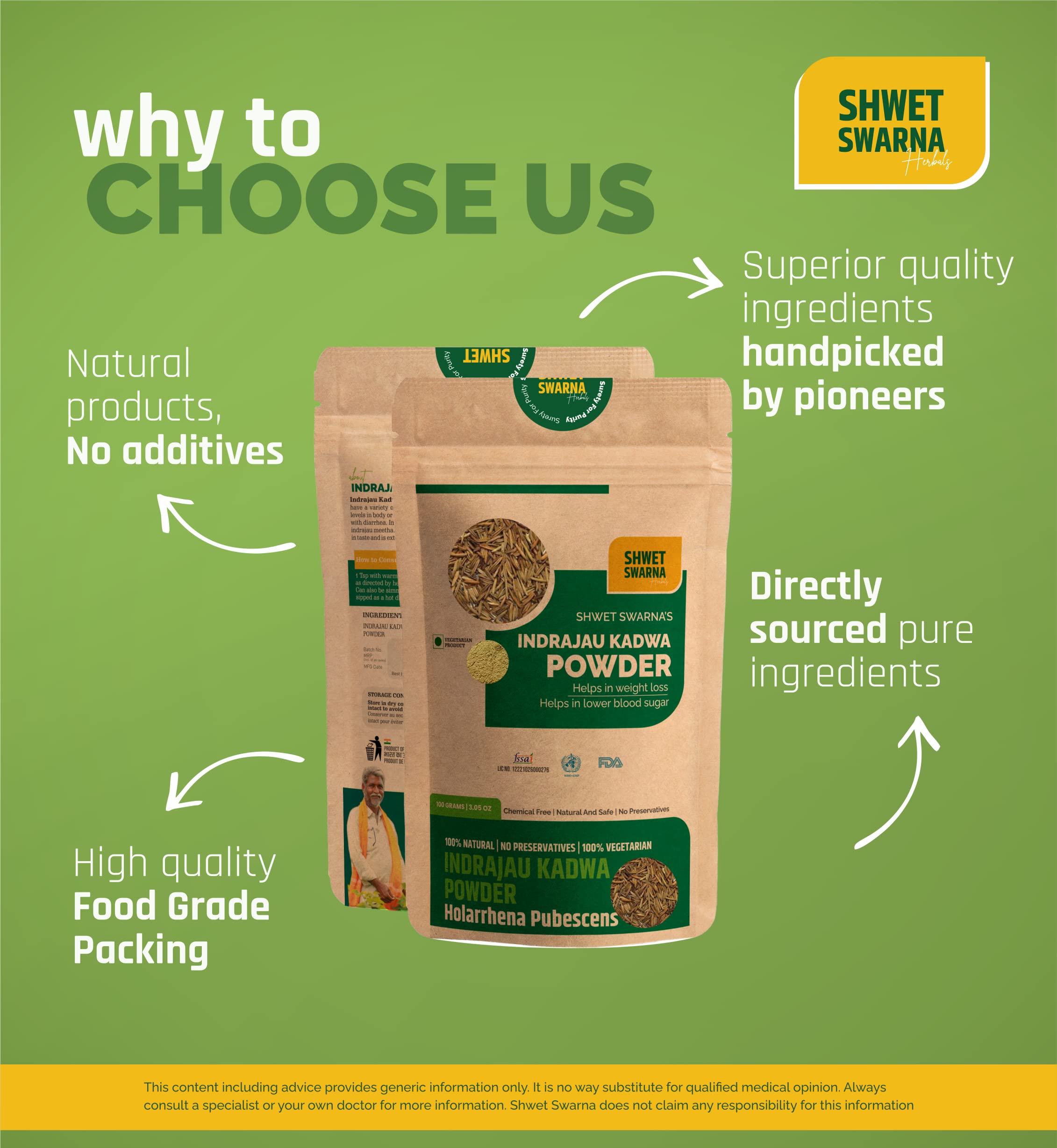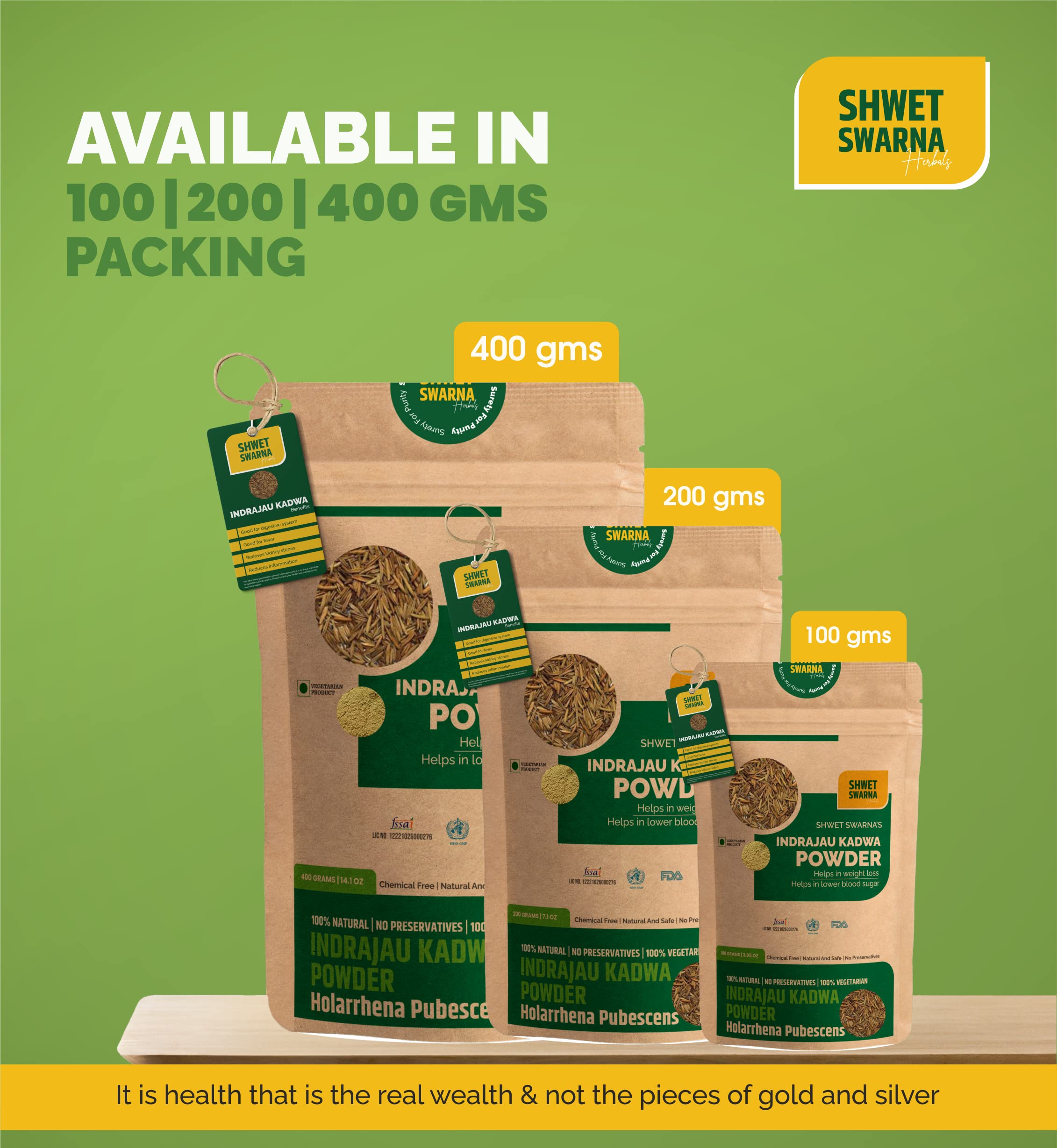 SHWET SWARNA Pure Natural Indrajau Powder Herbal Ayurvedic Health Supplement Product 100GM