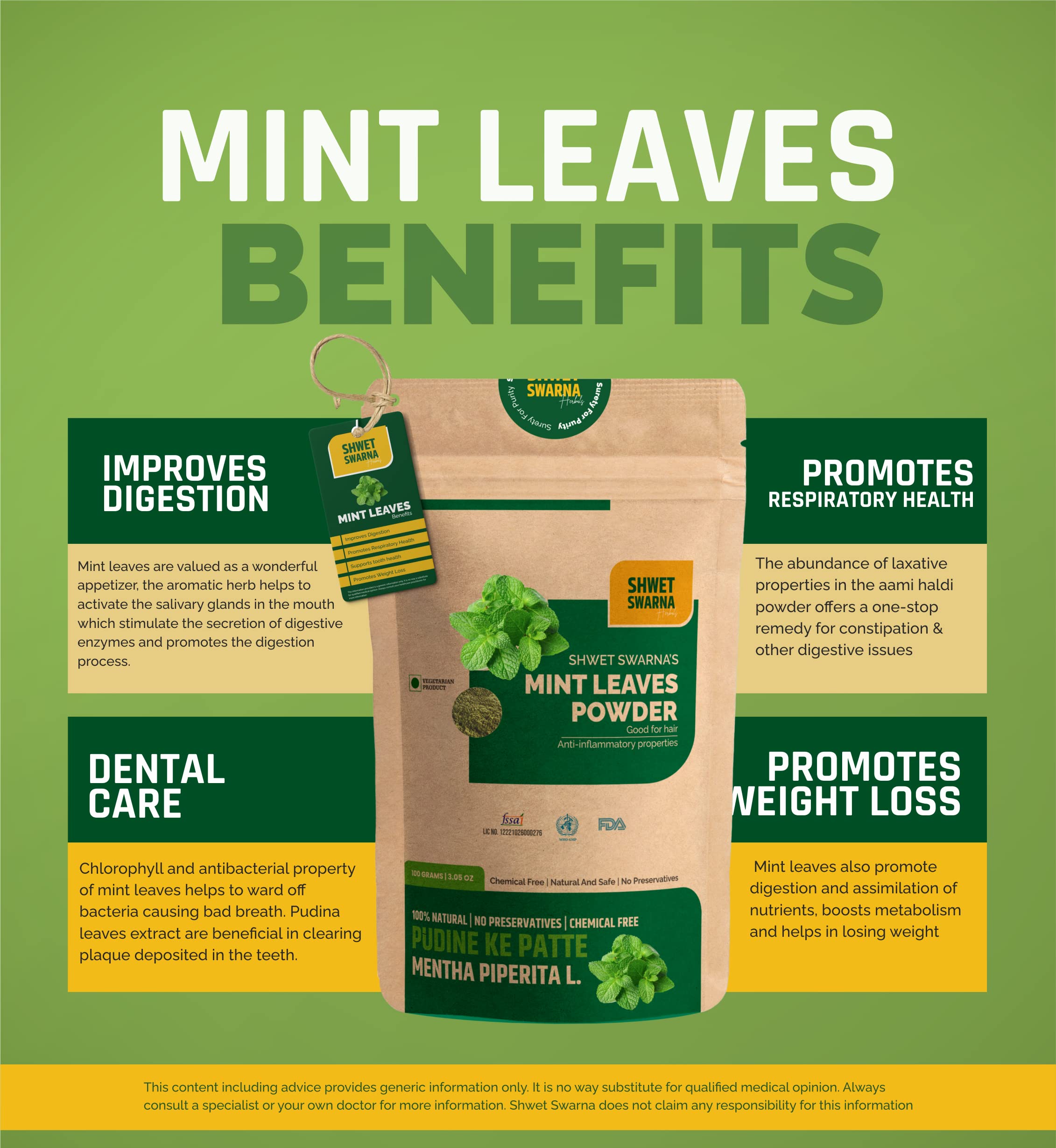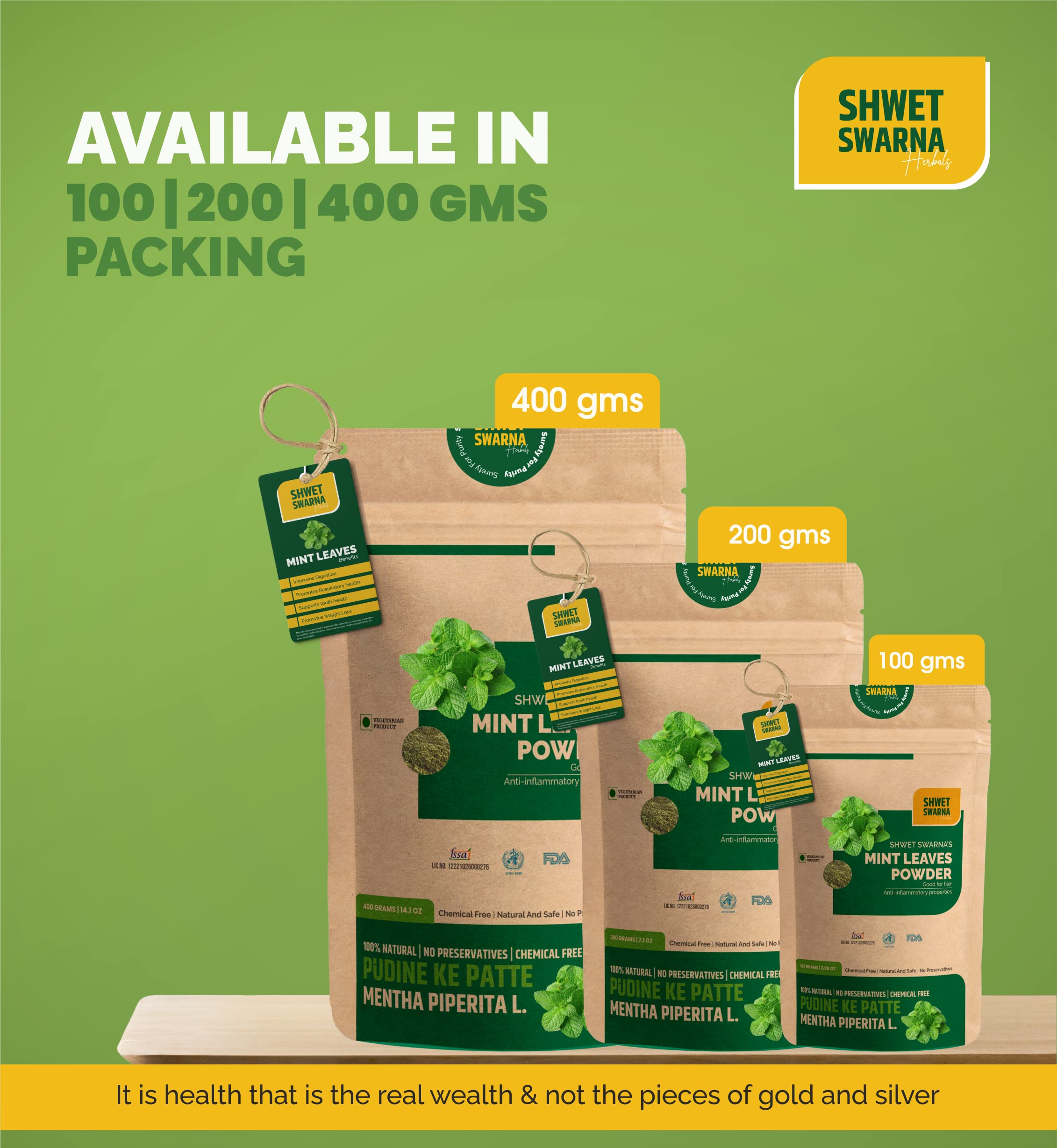 SHWET SWARNA Pure Natural Mint Leaves Powder/Podhina Powder Herbal Ayurvedic Health Supplement Product 100GM