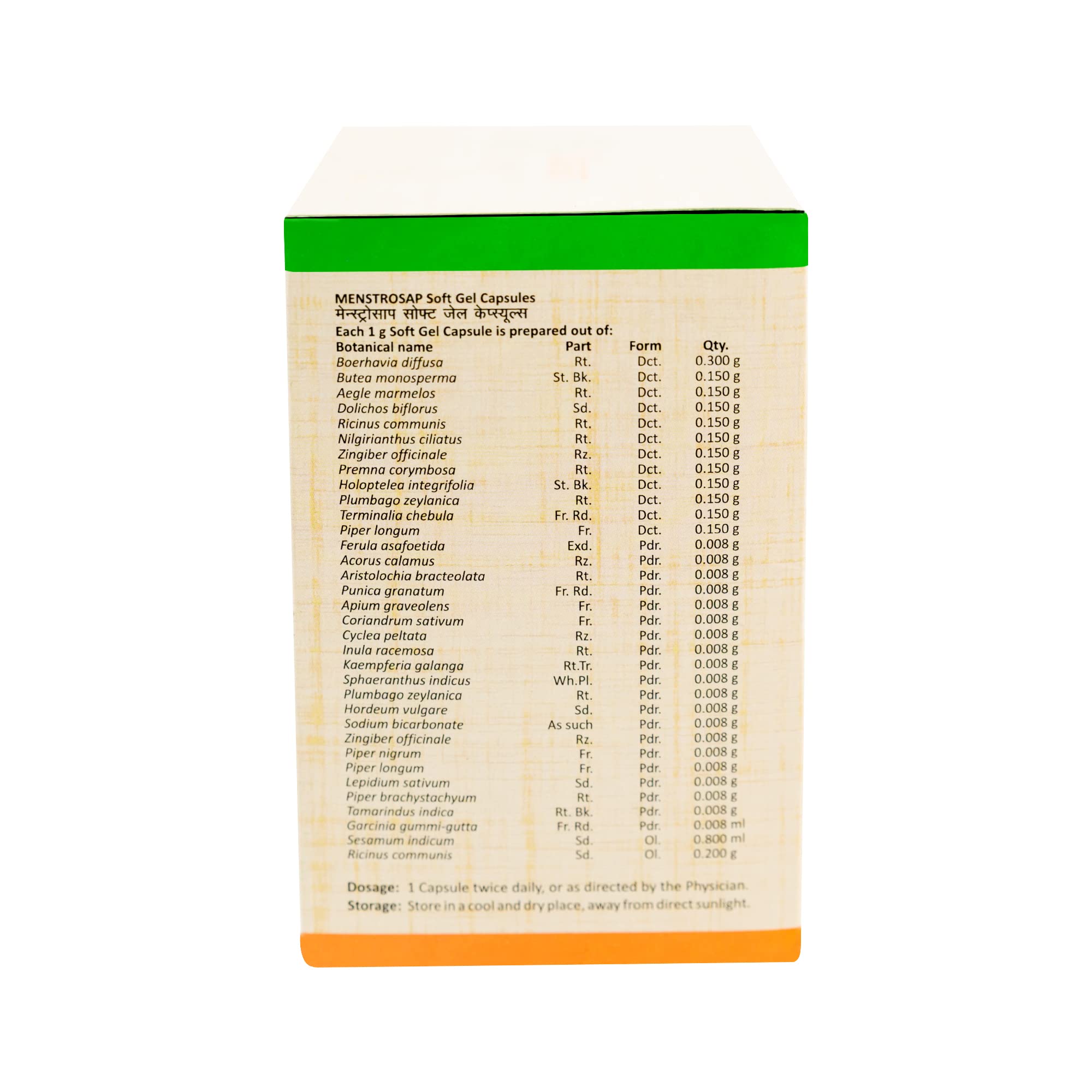 Menstrosap a patent product developed by Sitaram has proven efficacy in relieving in ful times. This is a boon to women who suffer deblitating ically on account of a very natural phenomenon. Menstrosap stimulates and improves endocrine function. The soft gel form makes it easy to use and palatable. With specific action in the pelvic region it strengthens the tissue. it is found to be effective in all kinds of s and keep yourself happy in natural way.