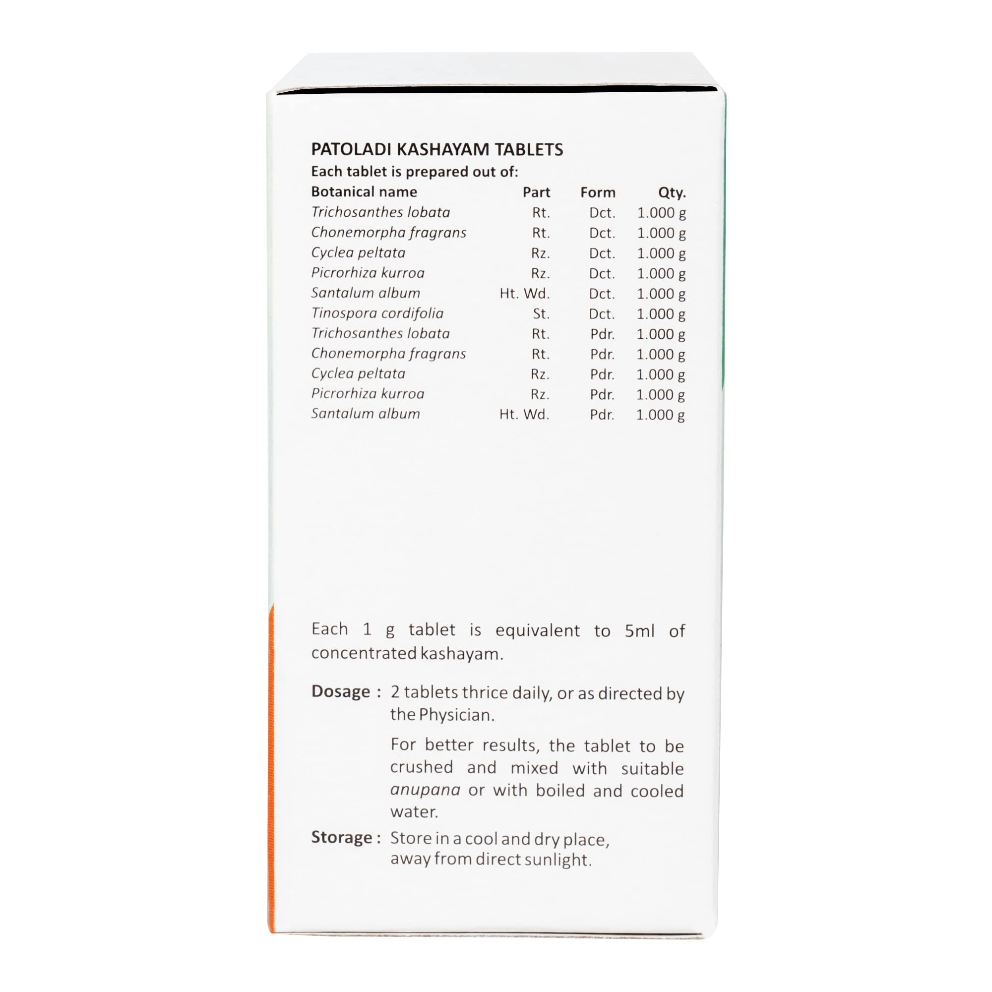 Patolakaturohinyadi Kashayam is a simple herbal decoction used in skincare. It pacifies the heat and viscidity of aggravated pitta in the and lymph. The formula cleanses the as well as cools the body from within. It is used routinely in the management of chronic skin conditions.