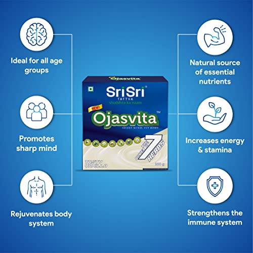 Ojasvita Vanilla 200g Refill Pack Add delicious Vanilla to piping hot milk or even serve chilled. A wonderful blend of Vanilla and seven amazing herbs. Simply irresistible!!! Power Of 7 HERBS Ashwagandha: Builds Immunity. Brahmi: Develops Mind Bringaraj: Rejuvenates System Jyotismathi: Develops Memory Kali Musali: Gives Strength Satavari: Nourishes Body Shankapushpi: Increases Energy. Net weight : 200 gm