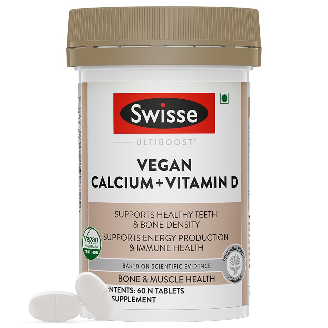 Swisse Vegan Calcium + Vitamin D3 for Stronger Bones, Teeth, Muscles & Immunity - 60 Tablets (Manufactured In Australia, Vegan Source Calcium Supplement For Higher Absorption)
