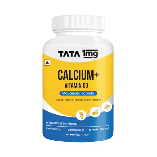 SUPPORTS JOINT AND BONE HEALTH: Tata 1mg Calcium + Vitamin D3 Advanced Tablets are enriched with Magnesium Zinc Alfalfa and Vitamin K2 that help support bone teeth and joint health. This dietary supplement also helps in muscle contraction muscle building
