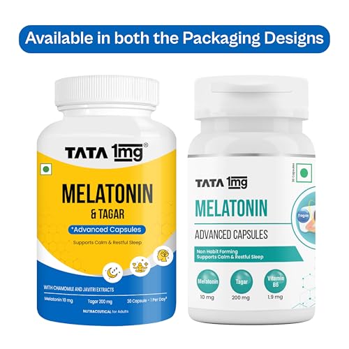 Tata 1mg Melatonin 10mg Vegetarian Capsule for Calm & Restful Sleep, For Men & Women, Pack of 30
