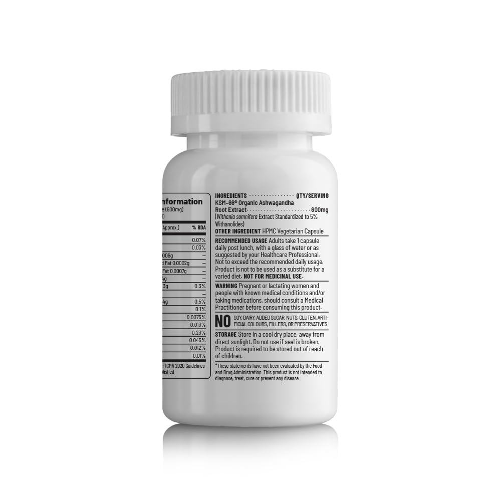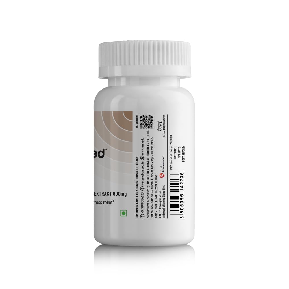 Unived’s KSM-66 Ashwagandha Root Extract contains 600mg Vegan Ashwagandha standardized to >5% Withanolides by HPLC.