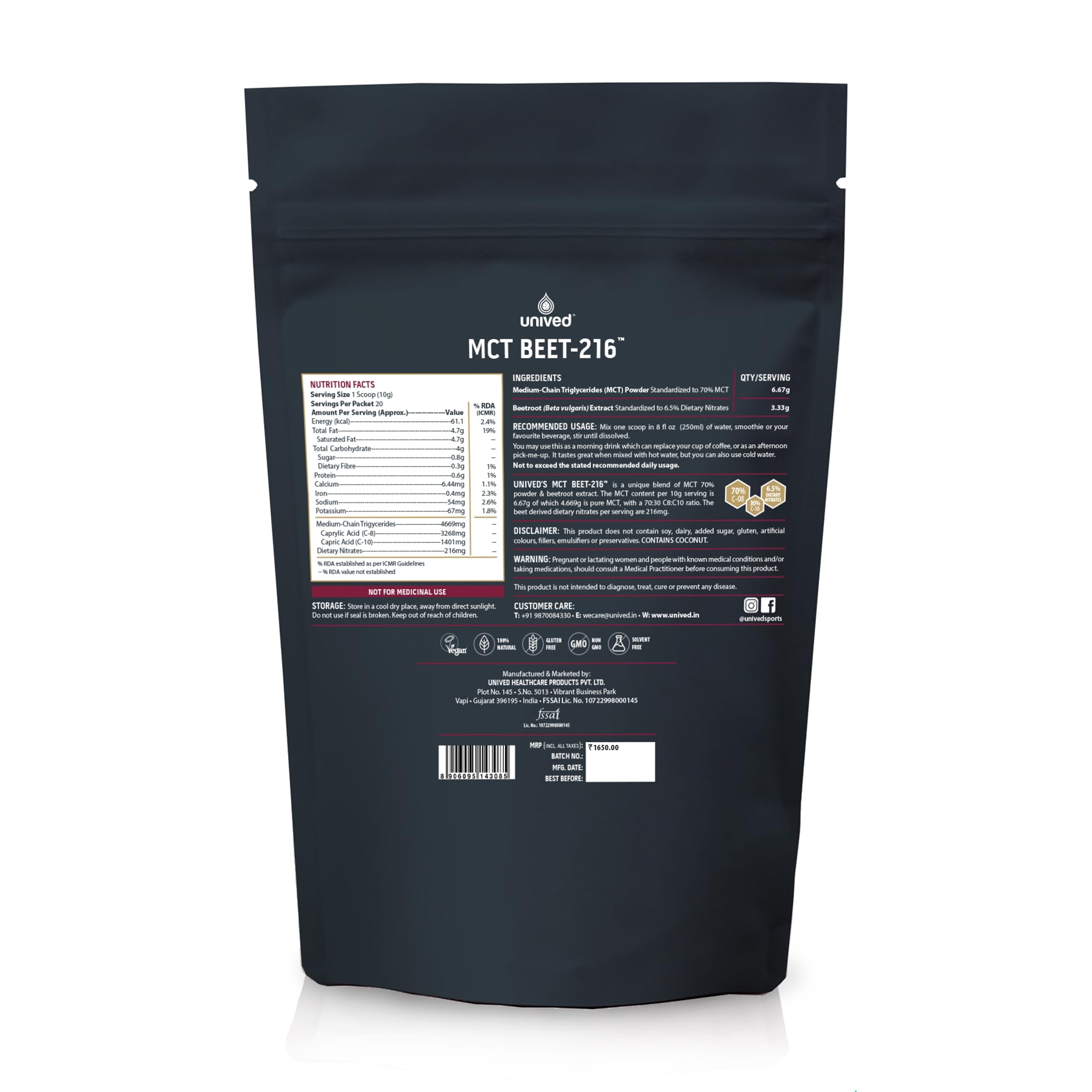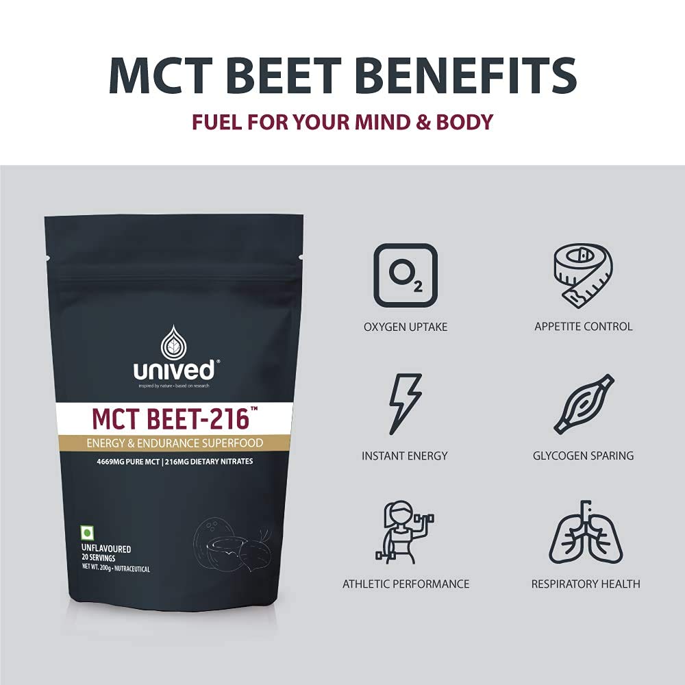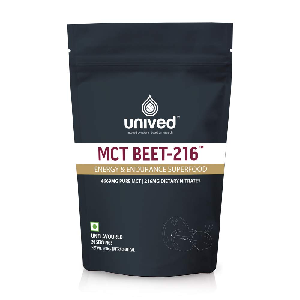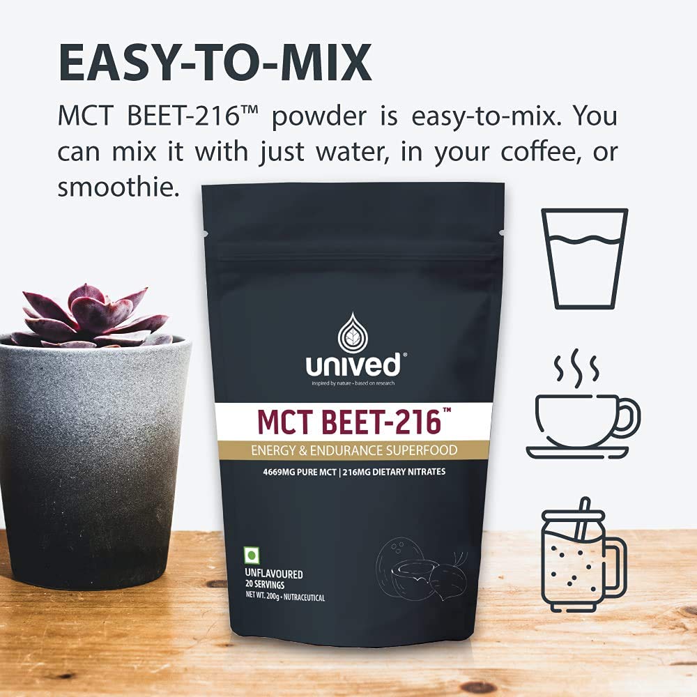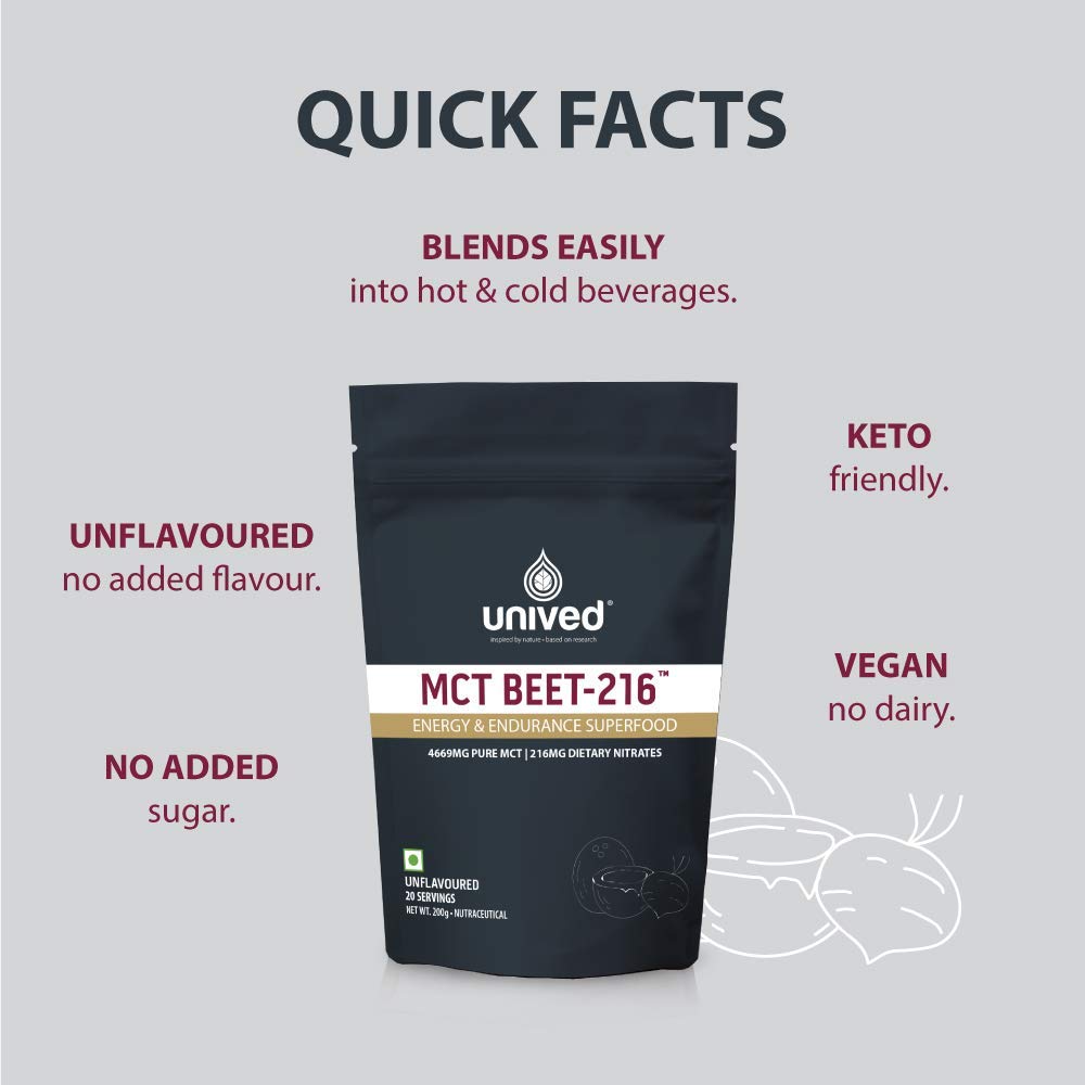 Unived MCT Beet-216 | Energy & Endurance Superfood | Pure MCT 4.6g 70/30 C8:C10 & 216mg Dietary Nitrates | Vegan & Keto Friendly | 200g