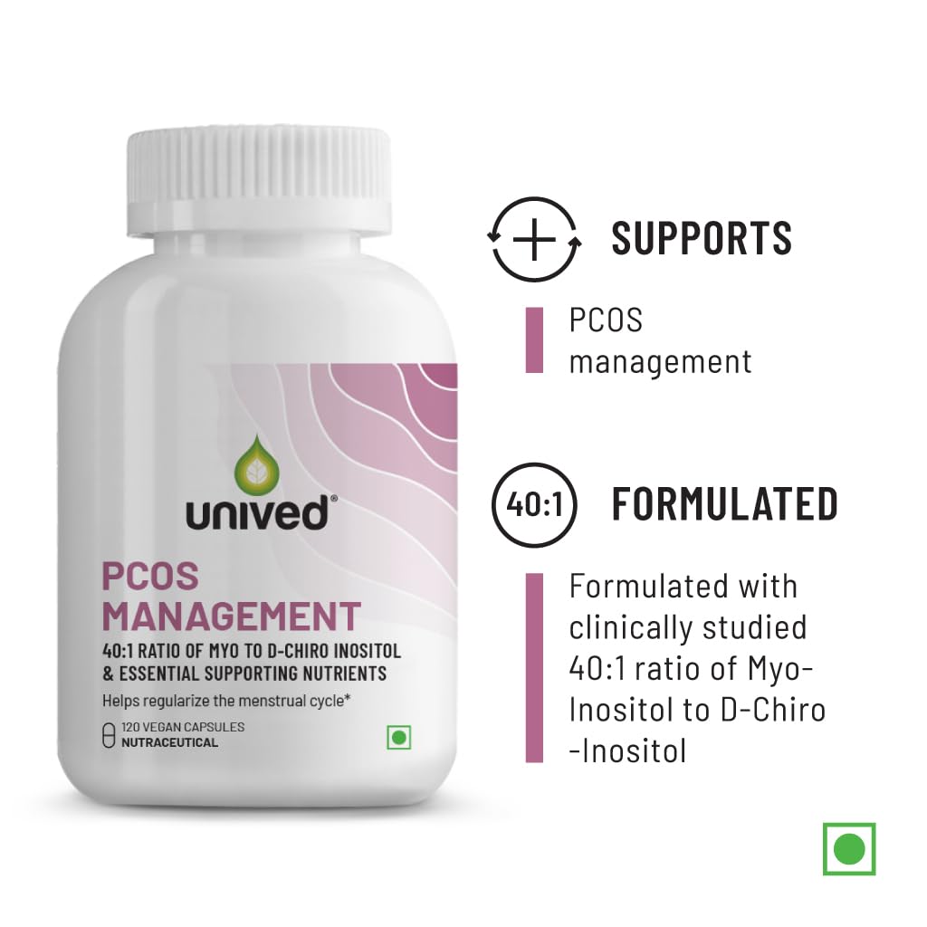 Unived PCOS Management 40:1 Ratio 2000mg Myo-Inositol to 50mg D-Chiro-Inositol with Natural Caronisitol for Acne Facial Hair Insulin Resistance (1 Month Supply capsules)