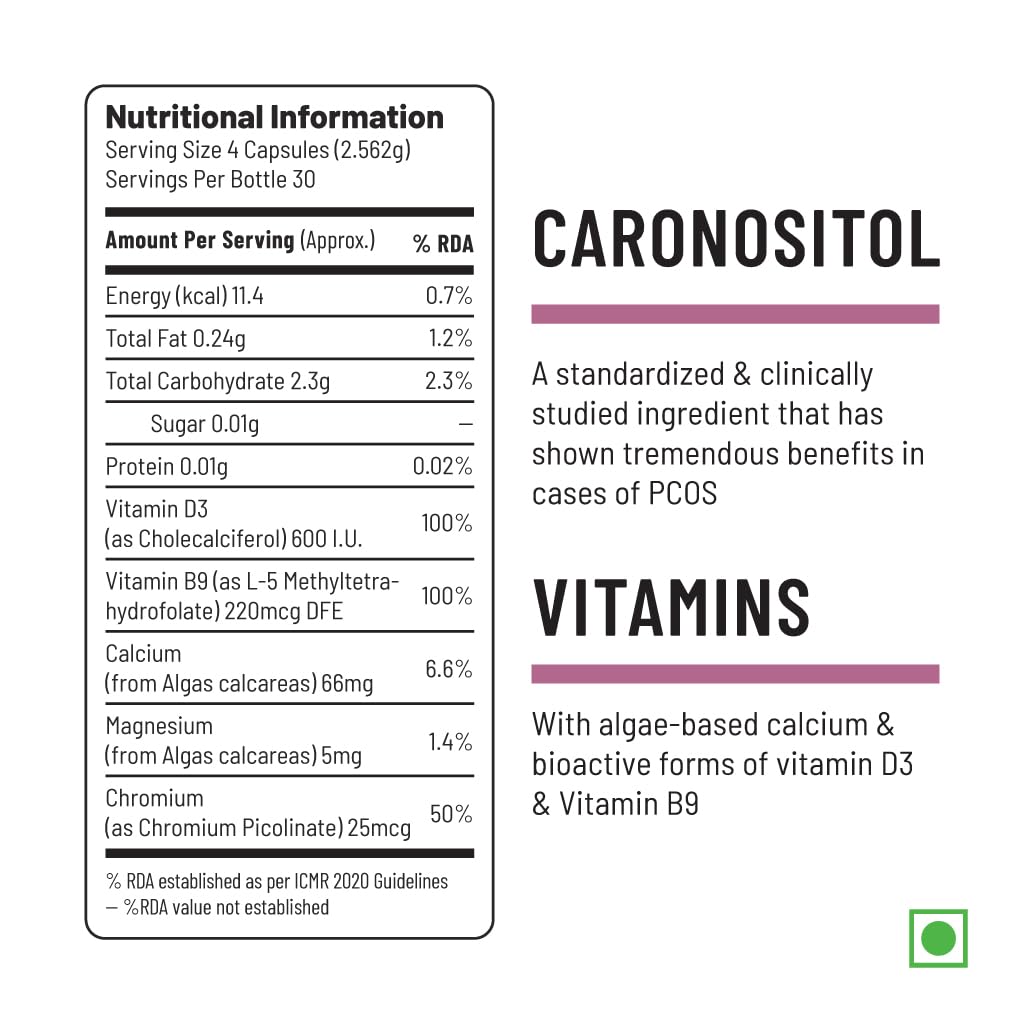 INSULIN RESISTANCE: is caused by an imbalance of MI DCI and insulin levels and is responsible for PCOS. Correcting insulin is very important because this may lead to the risk of development of other metabolic derangements along with PCOS. Our product cont
