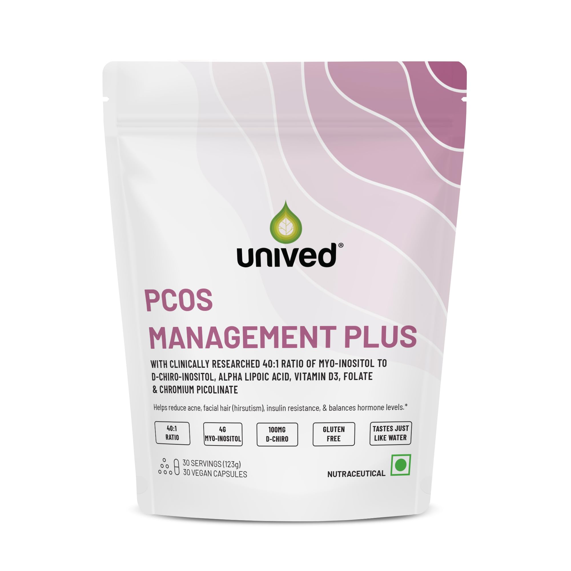 Unived PCOS Management Plus 40:1 Ratio 4000mg Myo-Inositol to 100mg D-Chiro-Inositol with Natural Caronisitol for Acne Facial Hair Insulin Resistance