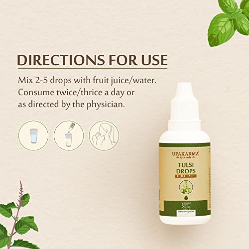 UPAKARMA Tulsi Drops | 5 Tulsi Types Extract Based | Natural Immunity Boosting, Cough and Cold Relief - 30ml