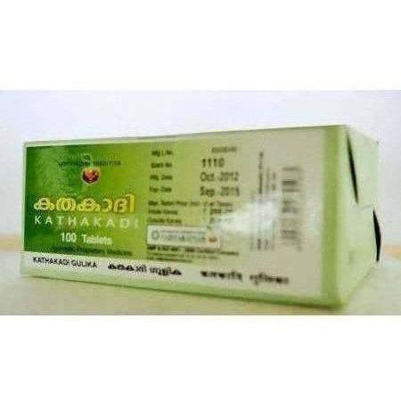 Vaidyaratnam Kathakadi Gulika - Herbal: 100 CapsulesVaidyaratnam Kathakadi Gulika is an ayurvedic formulation. The supplement is also termed as Katakakhadiradi Kashayam.Form: CapsulesIdeal for: AdultsType: Herbal supplementGender: Both men and womenPackage content: 100 capsules in an airtight containerIngredientsVaidyaratnam Kathakadi Gulika is an all-natural supplement. It is made withTurmericNutgrassMyrobalanArabic gumMango seedIndian barberryMarking nut treeClearing nut treeIndian moonseedIndian gooseberryFeather leaved acaciaFeaturesVaidyaratnam Oushadhasala was founded in 1941. This Ayurvedic institute is known for its high-quality supplements. Vaidyaratnam Kathakadi GulikaIs 100% herbalIs made with the best quality ingredientsIs not known to have negative effects on the userComes with a long shelf life of 3 years from the date of manufactureDoseVaidyaratnam Kathakadi Gulika should be taken after consulting an Ayurvedic physician. Generally, the below steps are followed to have the supplement.Take 1 capsule per dayTake the decoction twice a dayShould be taken in empty stomachShould be consumed with adjuvantsTipsVaidyaratnam Kathakadi Gulika stays fresh and usable for long if the below tips are followed.Keep in the provided airtight containerWarningKeep away from childrenKeep at a cool and dry placeDo not exceed the recommended doseLegal Disclaimer: Statements regarding dietary supplements have not been evaluated by the FDA and are not intended to diagnose, treat, cure, or prevent any disease or health conditionNote: The product is guaranteed to be 100% genuine. Product images are for illustrative purposes only. Images/packaging/ labels may vary from time to time due to changes made by the manufacturer's manufacturing batch and location. The product description is for information purposes only and may contain additional ingredients
