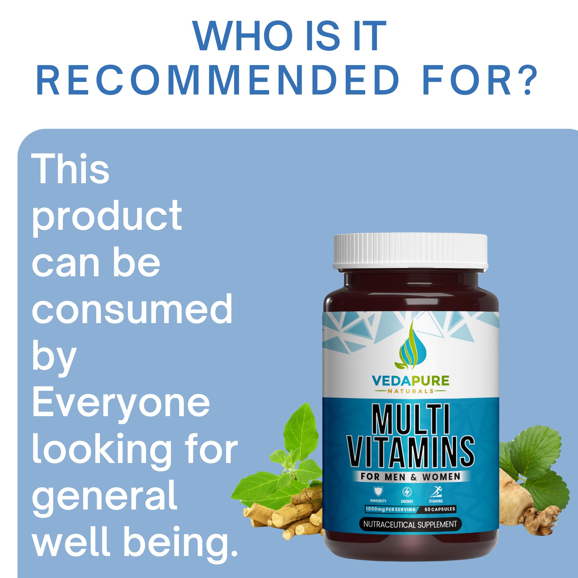 Vedapure Naturals Daily Multivitamin for Men & Women | Multivitamin with Zinc Vitamin C Vitamin D Calcium Iron & K2 | Supports Stamina Immunity Bone Strength and Overall Health | - 60 Capsules