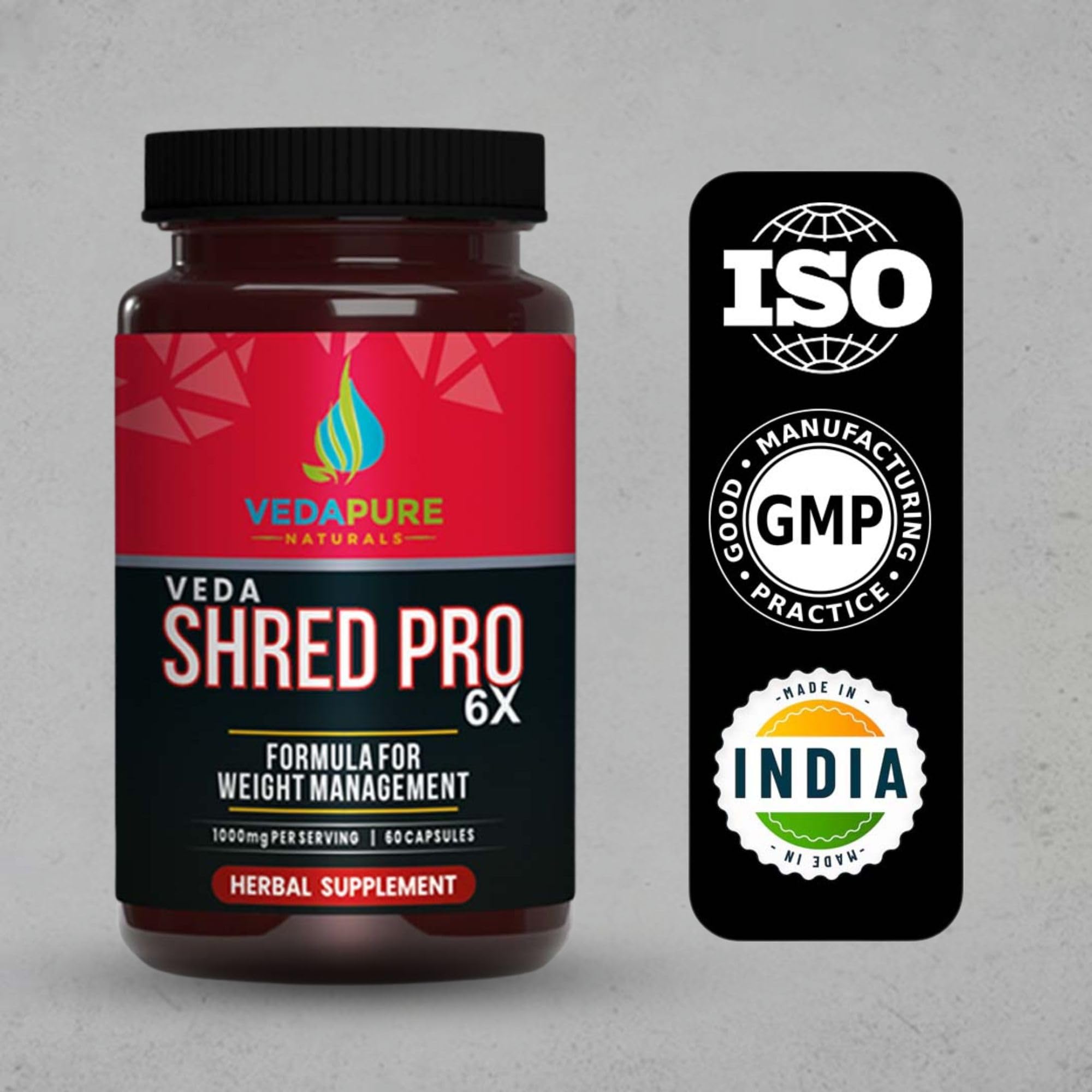 Vedapure Shred Pro 6x - 60 Capsules (1000mg) | Supports Weight Management for Men and Women | Boost Metabolism and Immunity | Helps in Improving Digestion (Pack of 2)