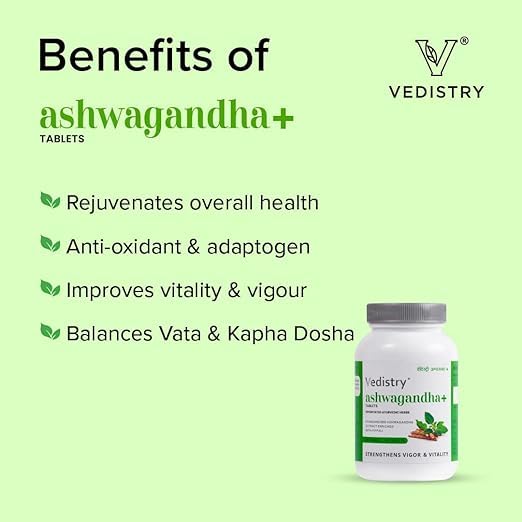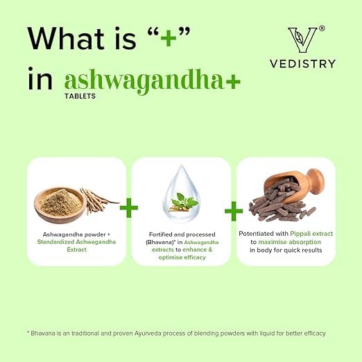 Vedistry Ashwagandha + | With Piperine for better absorption|Boost energy & strength | Improve Vigor & Vitality