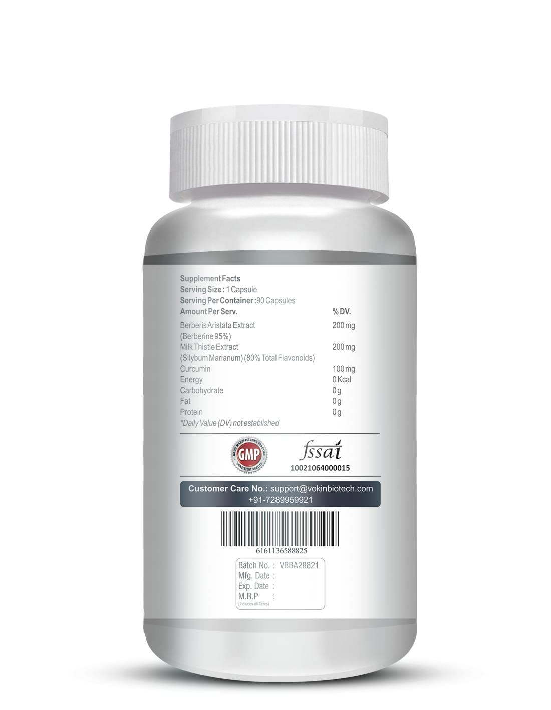 Vokin Biotech Berberis Berberine 95% with Milk Thistle Vegetable Capsules 90 Count