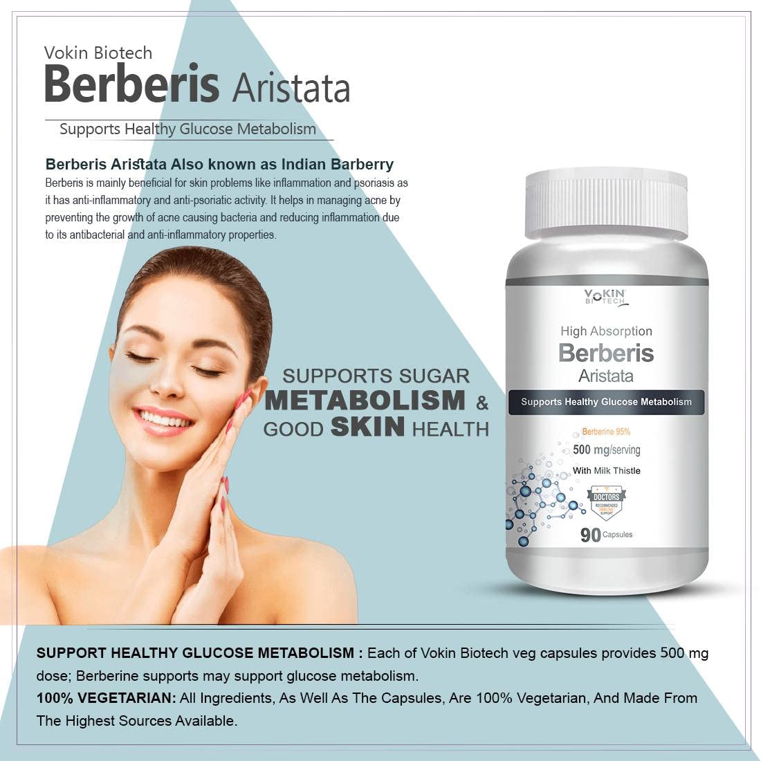 Support healthy glucose metabolism : Each of Vokin Biotech veg capsules provides 300 mg dose; Berberine supports may support glucose metabolism.