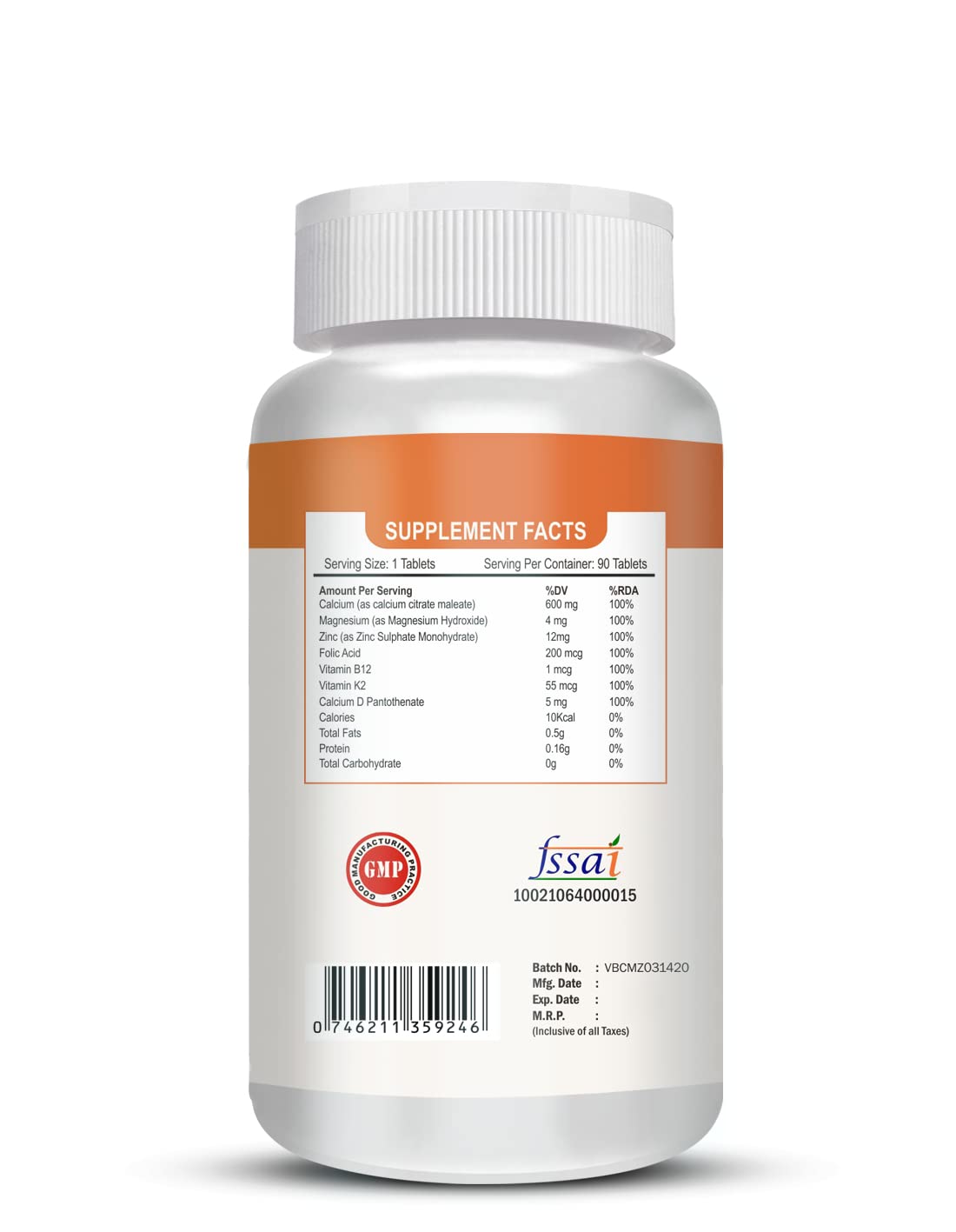 Vokin Biotech Calcium Magnesium Zinc D3 & B12-90 Tablets