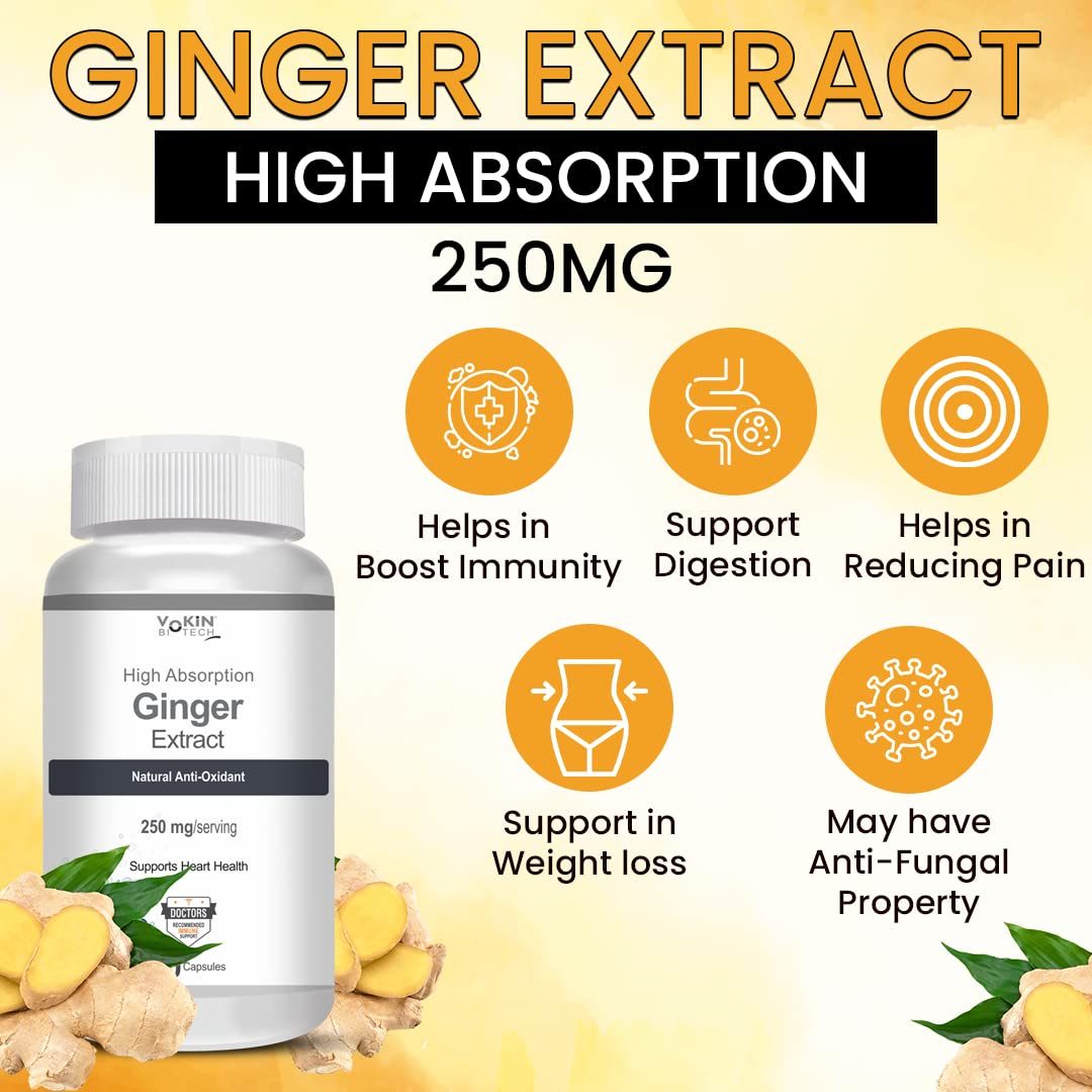 Vokin Biotech Ginger Extract 5% Gingerols -90 Veg Capsules (Pack of 1)