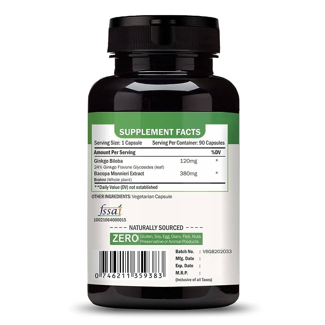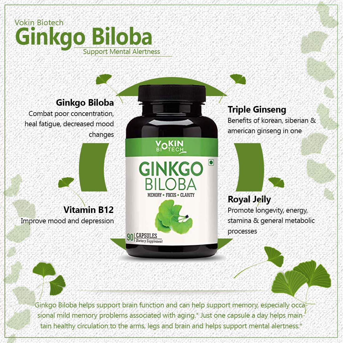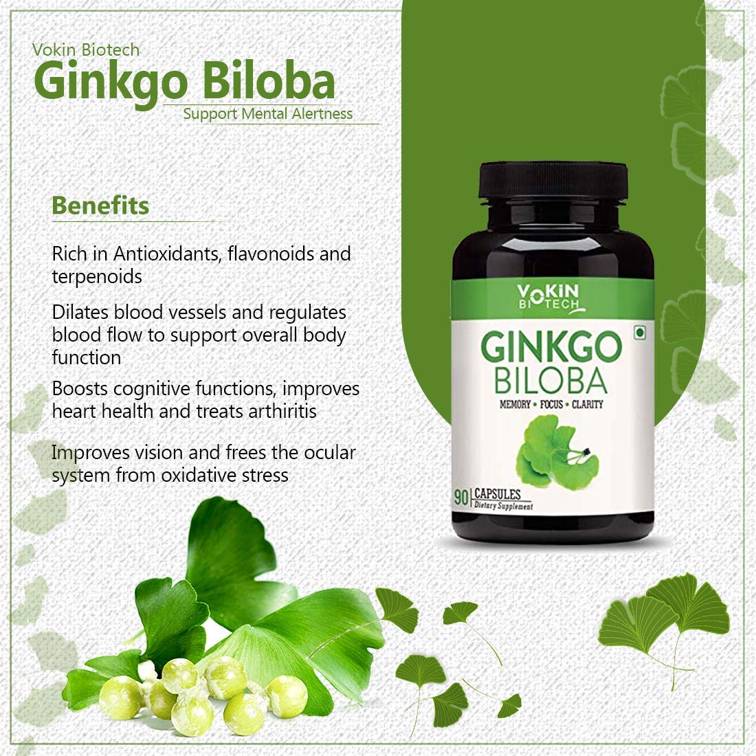 Vokin Biotech Ginkgo Biloba with Brahmi Boosts Concentration & Learning Activities 90 Capsules