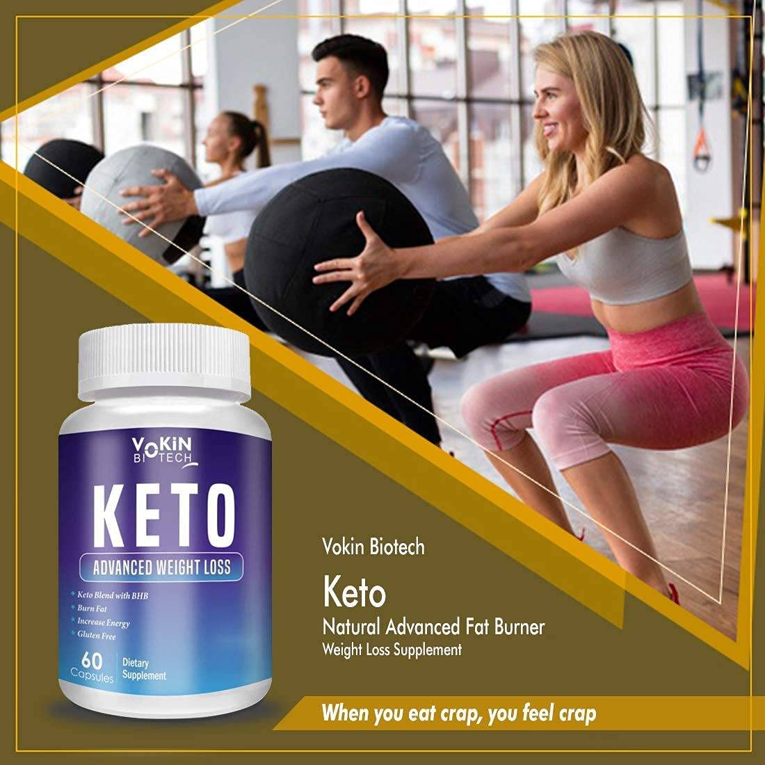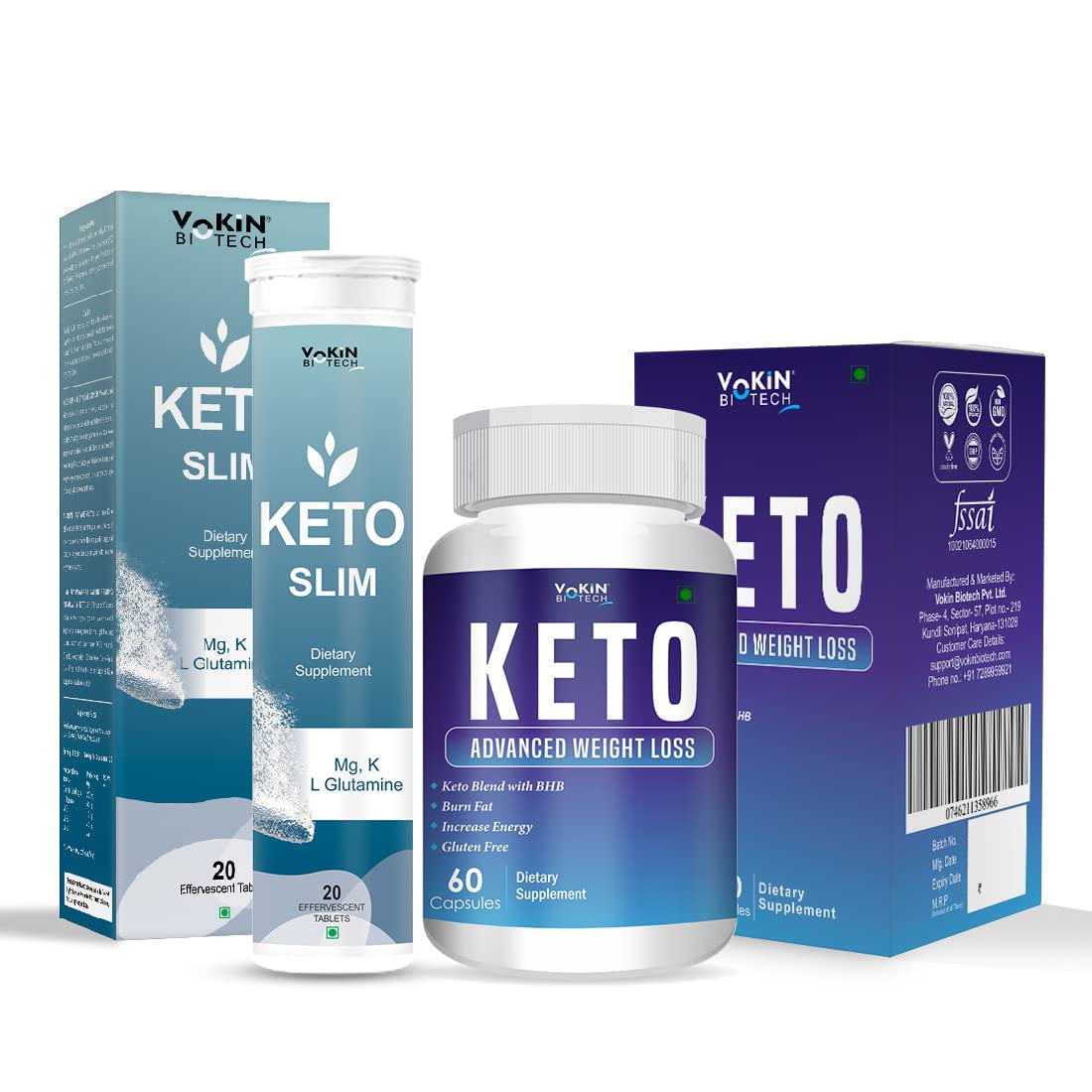 Vokin Biotech Keto 60 Capsules for weight loss (Blue) & Free Exclusive Keto Slim Water Soluble 20 Tablets