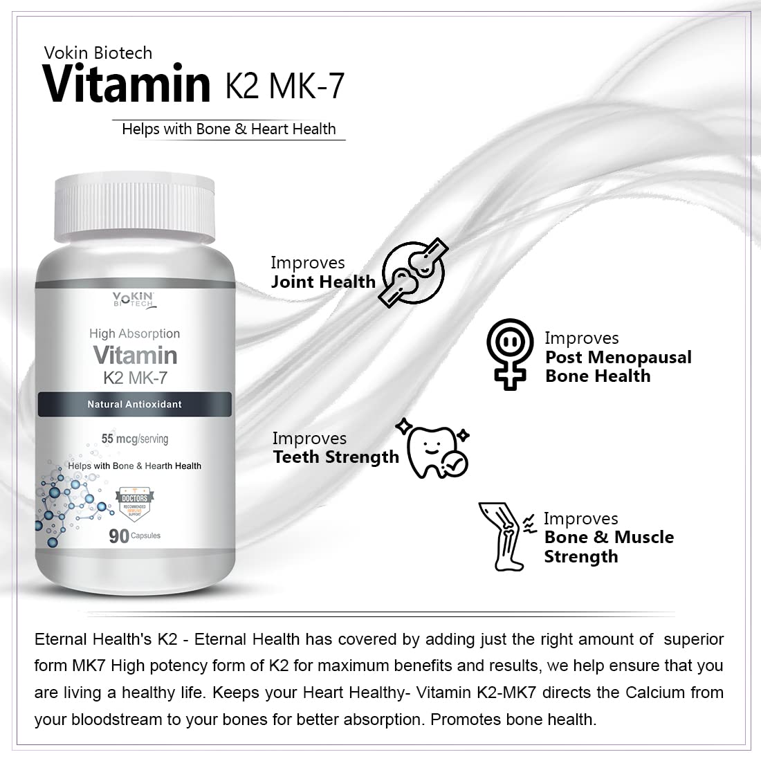 Vokin Biotech Vitamin K2 MK-7- Support Bone & Heart Health - 55mcg (90 Capsules)