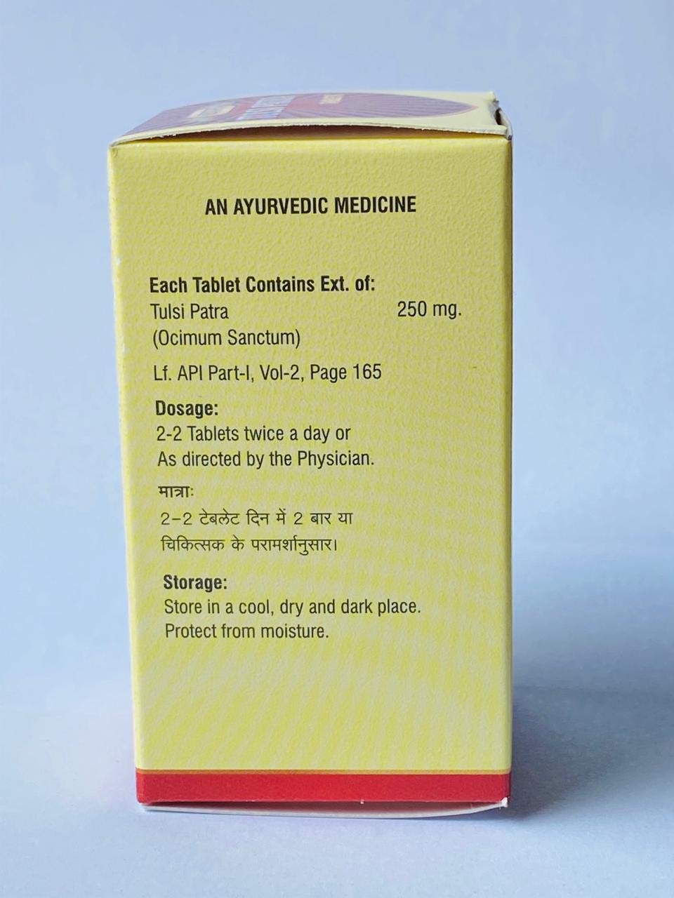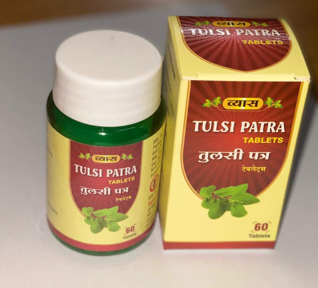 This product has 1 bottle of Tulsi Patra tablets which contains 60 tablets. The natural properties of Tulsi (Holy Basil) is intact in each tablet. Natural benefits of Tulsi (Holy Basil): Anti-inflammatory anti-viral anti-bacterial properties. Acts as detoxifying cleansing and purifying agent. Helps in relieving from sore throat cold and cough. Helps to strengthen immunity and facilitates proper digestion. Tulsi is called Elixir of life in Ayurveda granths.
