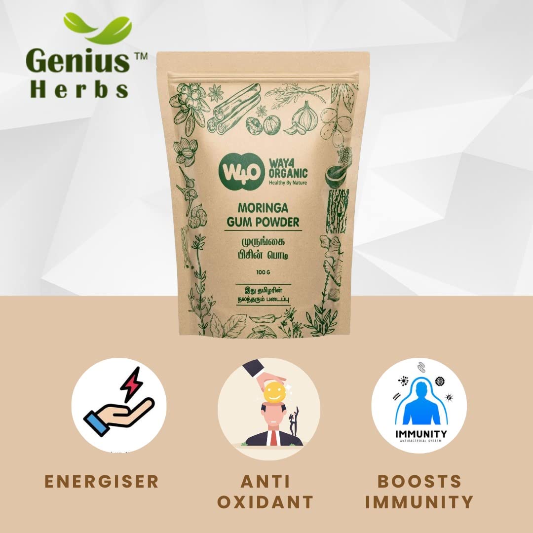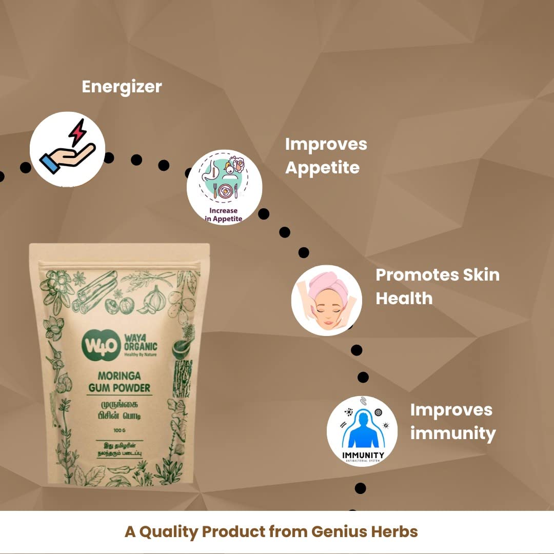 Way4Organic Moringa Gum Powder 100g Each (Pack of 2) | Murungai Pisin Podi | Sahajan Gond | Drumstick Tree Resin | Natural Ayurvedic Supplement