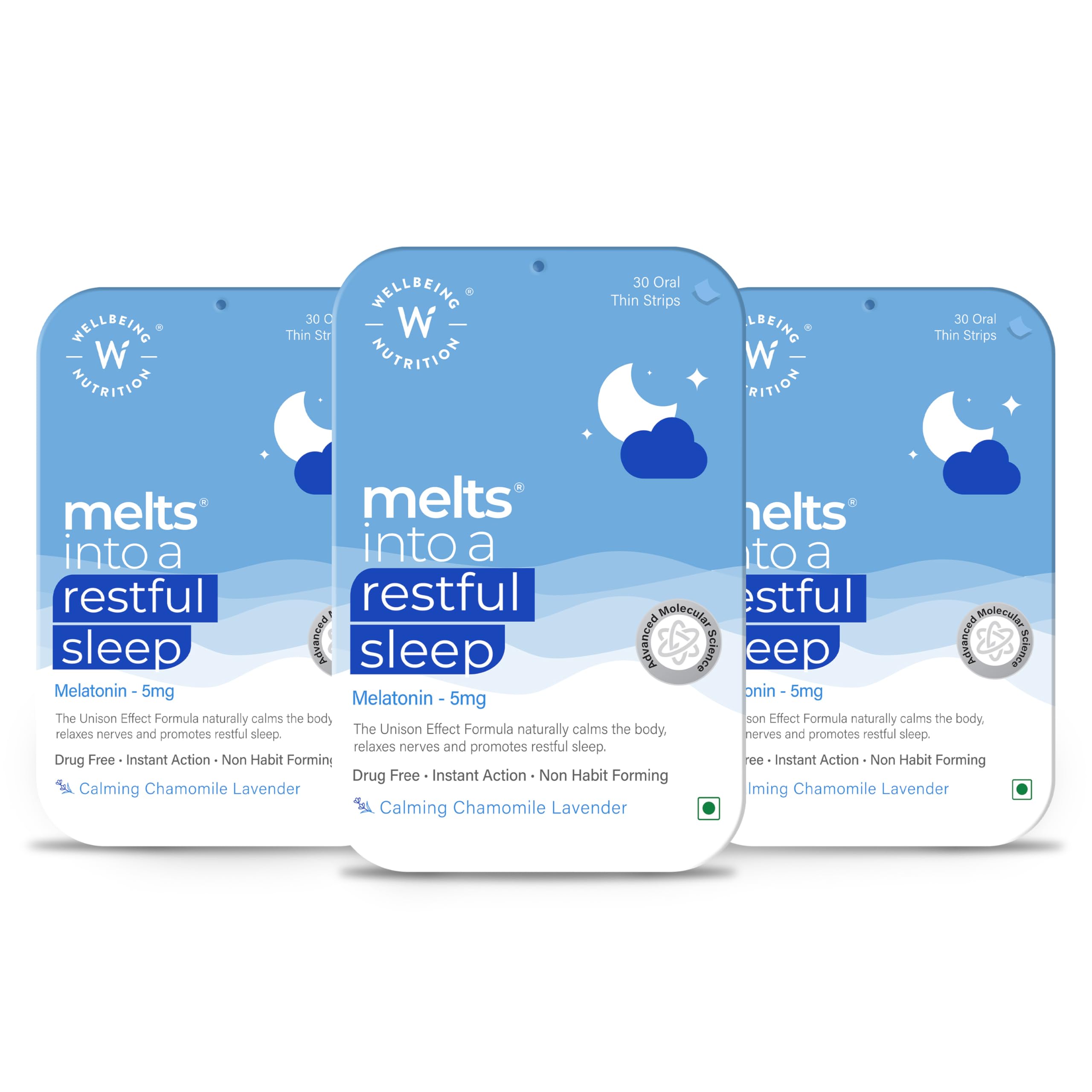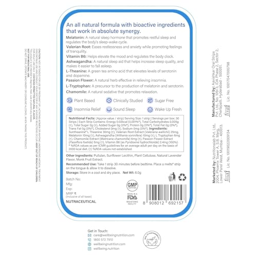 • HOW TO TAKE: Take 1 strip 30 minutes before bedtime. Place a melts strip on the tongue & allow it to dissolve. LOVED Globally : Over 5 million happy customers in 6 Countries trust Wellbeing Nutrition for Science driven Plant based Nutrition. Based on clin