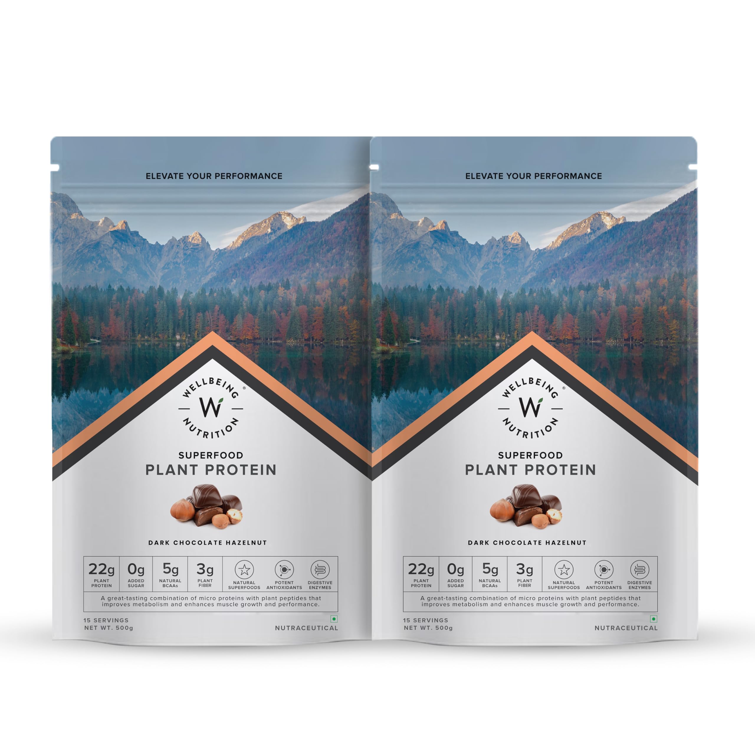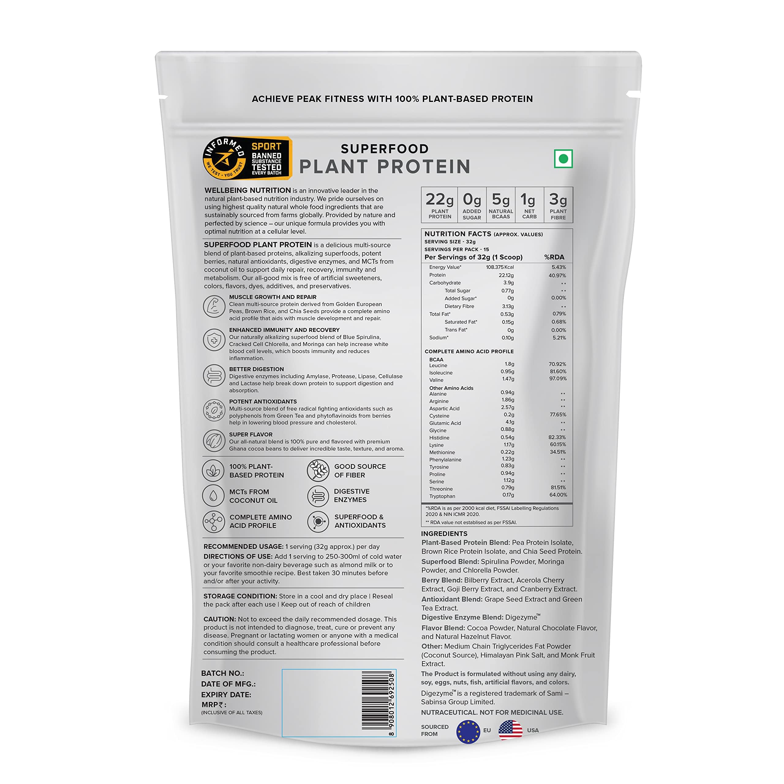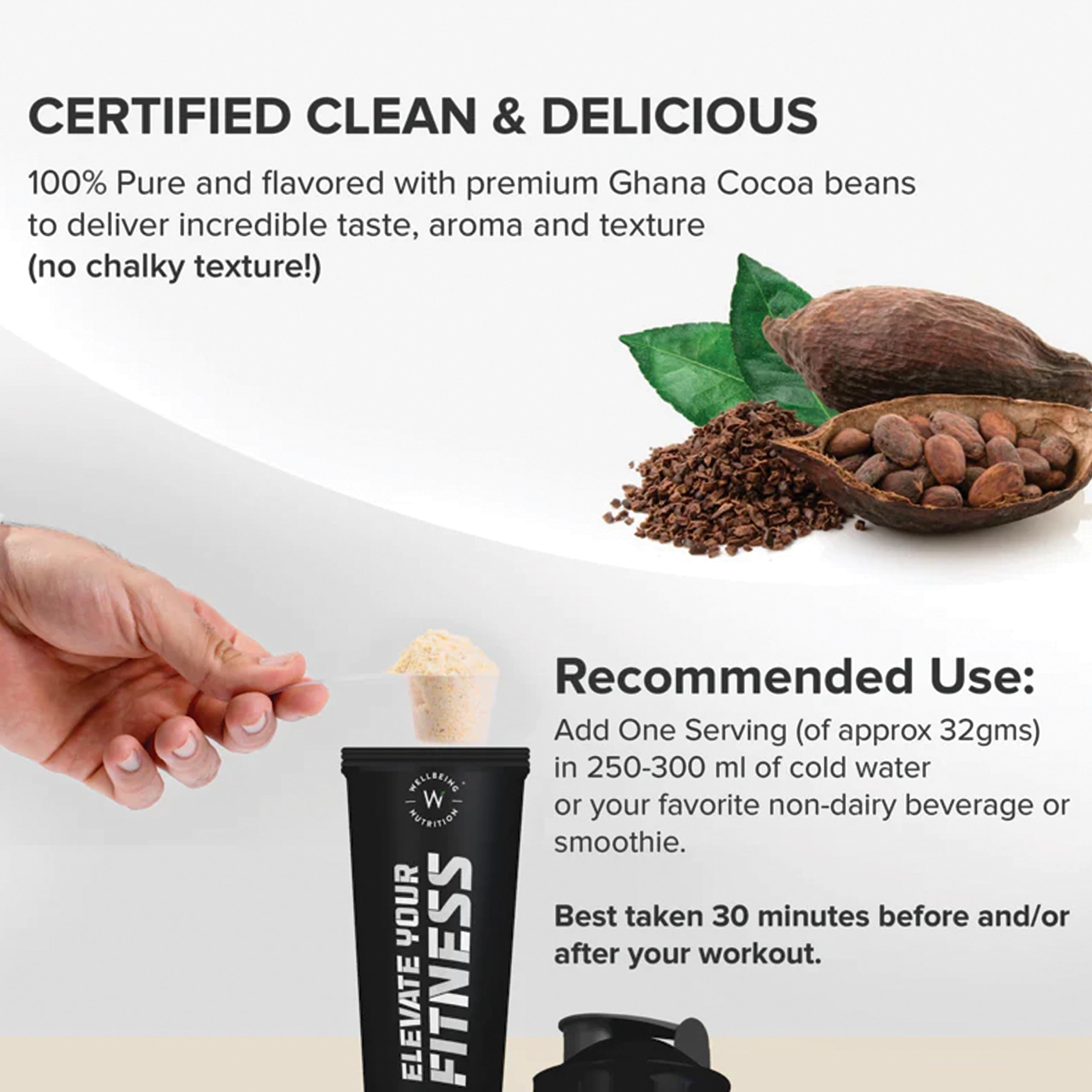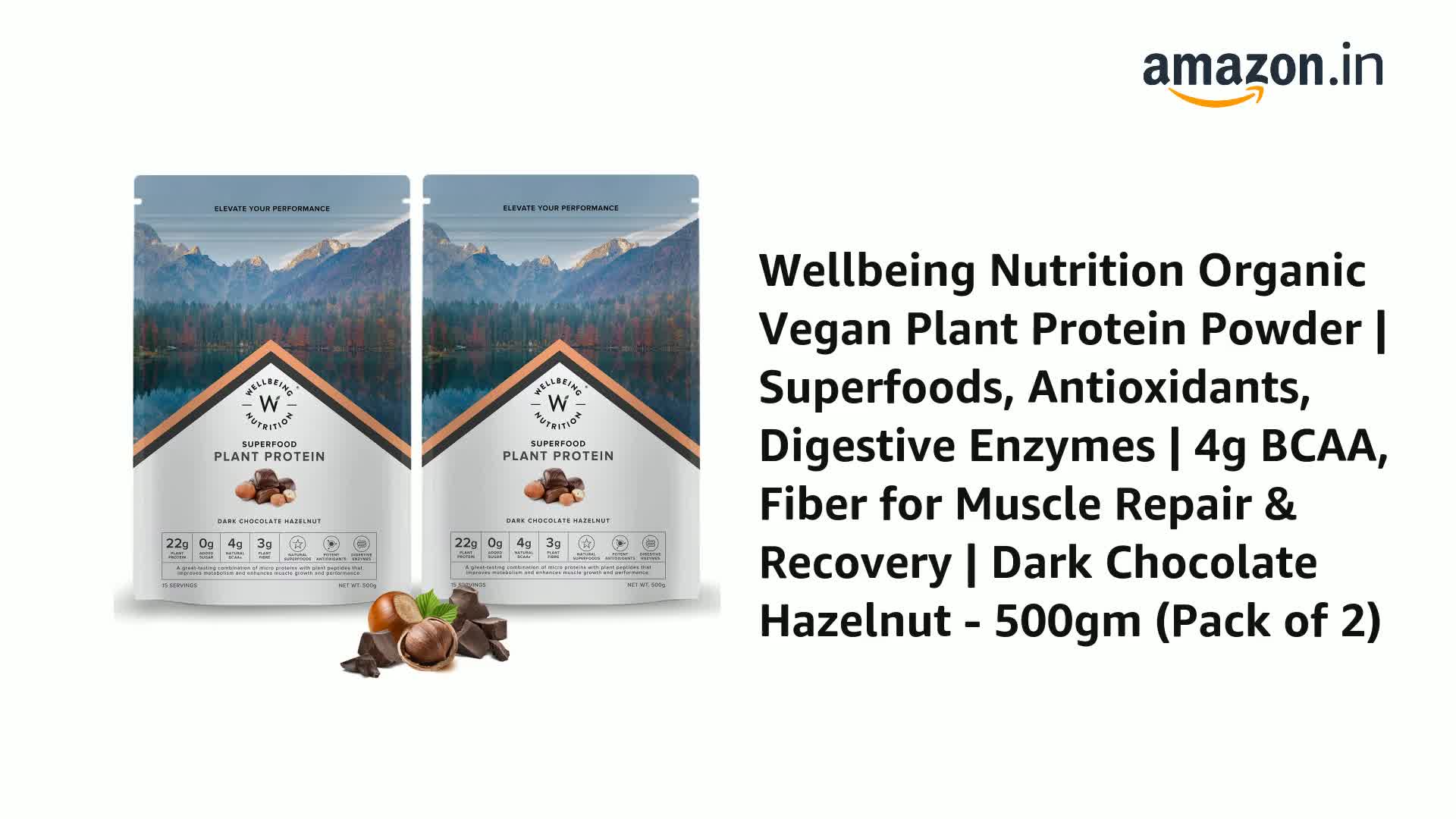 Wellbeing Nutrition Organic Vegan Plant Protein Isolate Powder | 22g Protein, 5g BCAA European Pea & Brown Rice Protein | Superfoods, Fiber for Muscle Growth & Recovery | Dark Chocolate - 500gm
