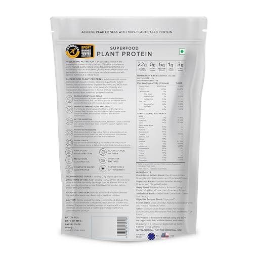 • COMPLETE SUPERFOOD ORGANIC PLANT PROTEIN : Scientifically formulated by nutritionists in the US. This delicious superfood protein is 100% plant based high bioavailability and digestibility. A single serving provides 22g of complete protein requirements al