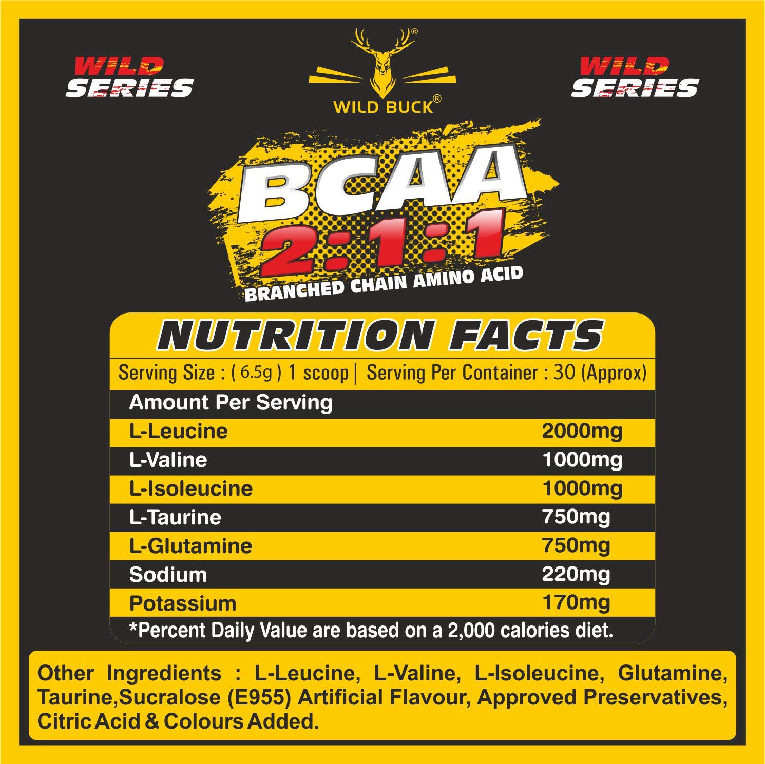 Wild Buck BCAA Supplement 2:1:1 Instantized BCAA Energy During Workout BCAA Supplement Pre & Post Workout Supplement | BCAA Powder | Amino Energy Supplement [30 Servings 200 g Wild Berries Flavor]