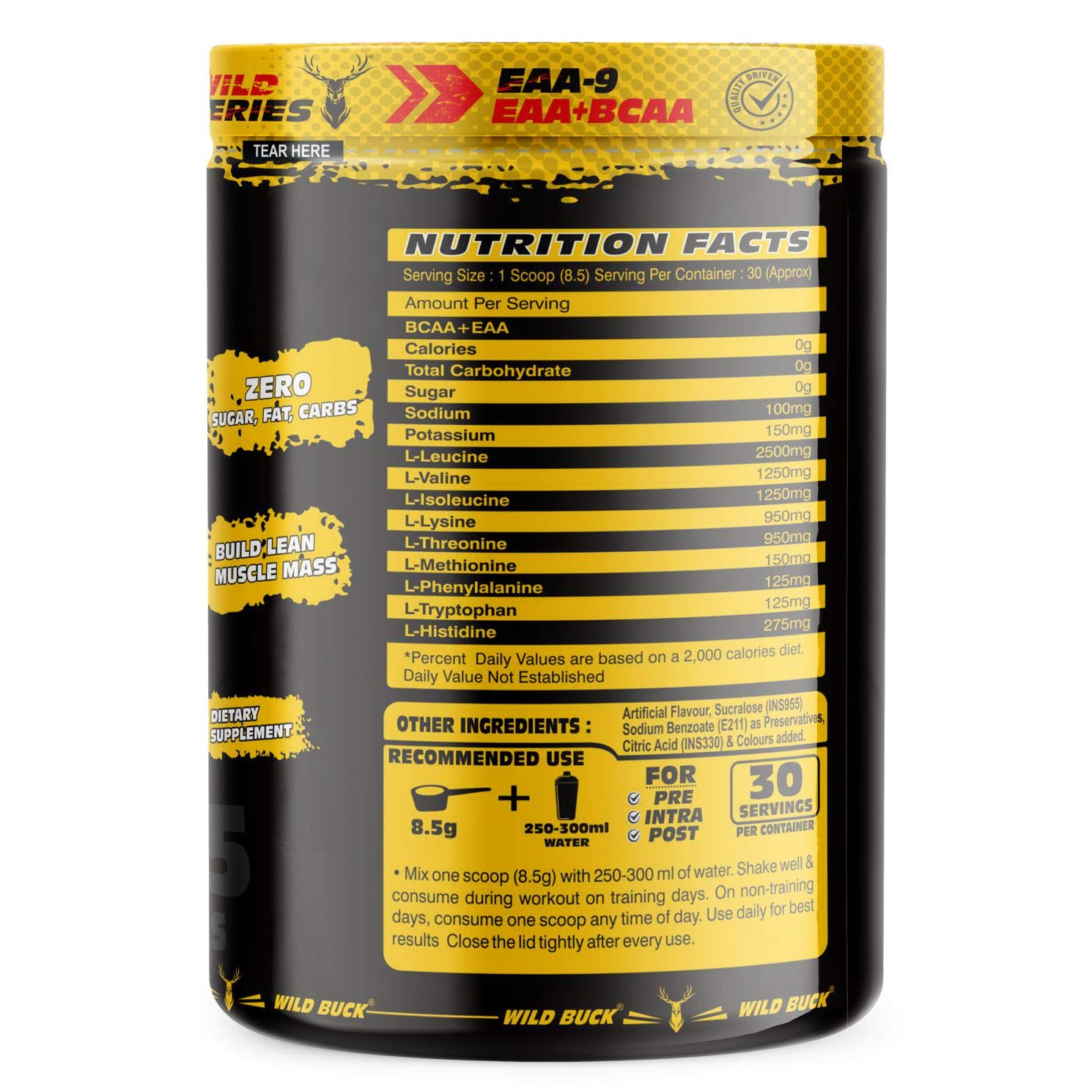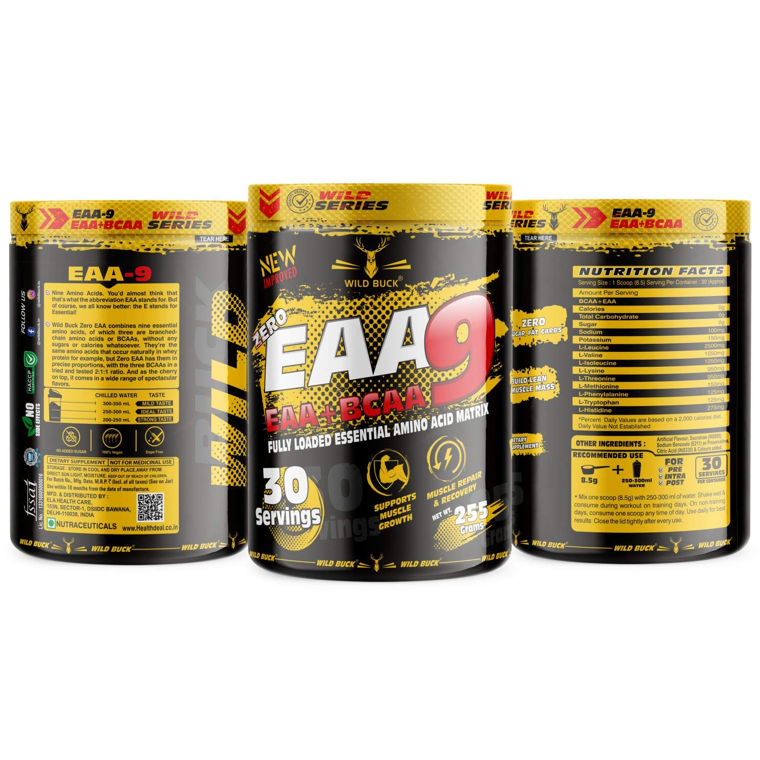 Maximum muscle recovery: WILD BUCK EAA is the ultimate intra and intra-workout energy infusion. It provides all of the essential amino acids required for muscle protein synthesis