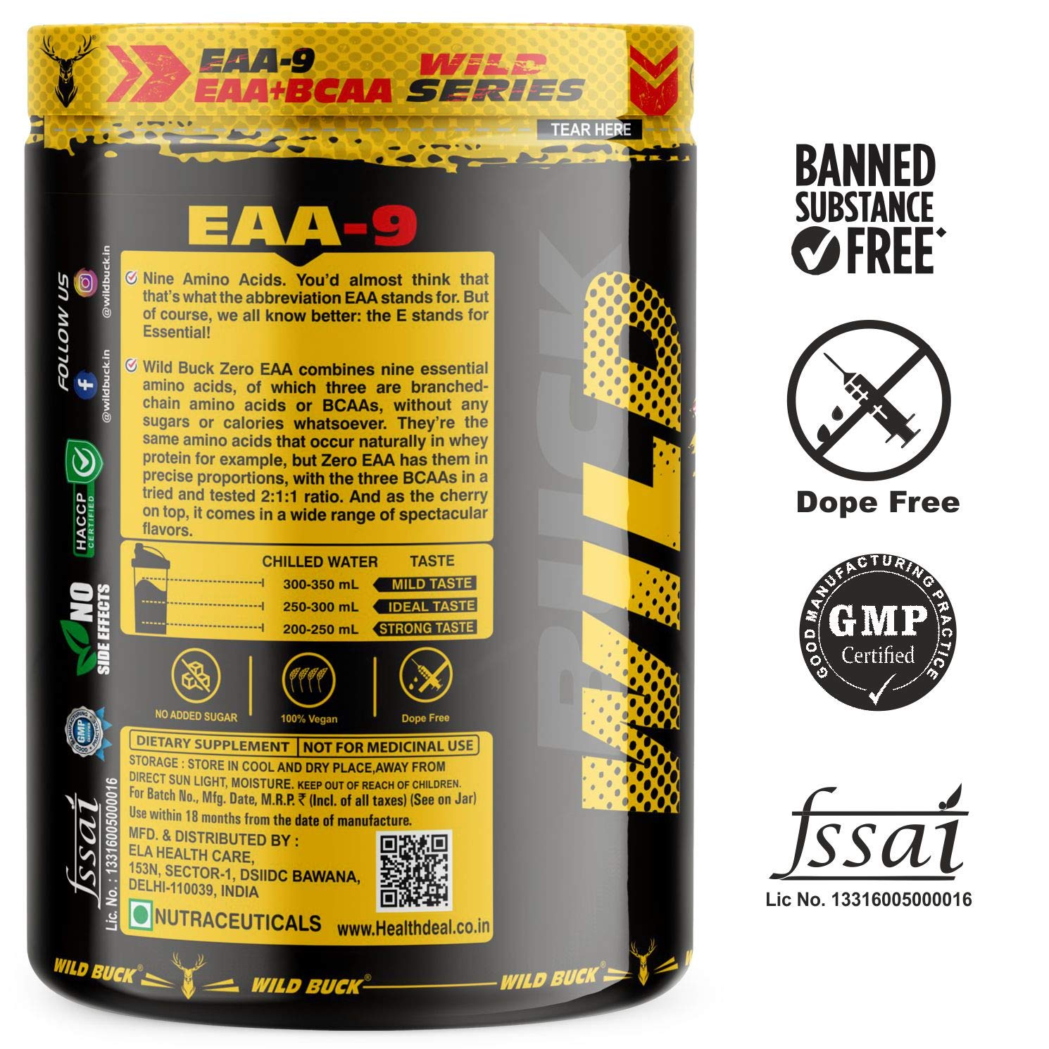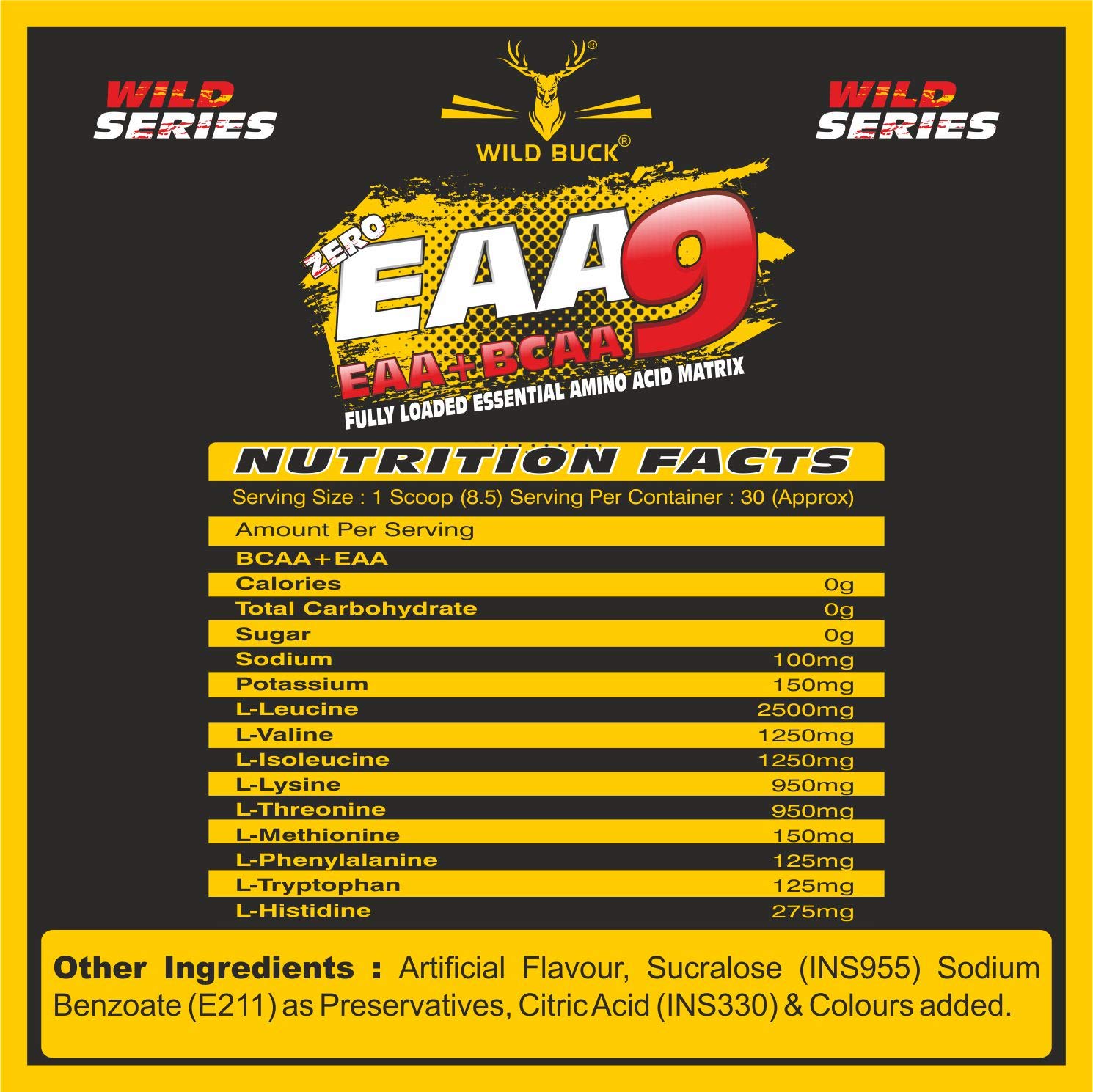 Maximum muscle recovery: WILD BUCK EAA is the ultimate intra and intra-workout energy infusion. It provides all of the essential amino acids required for muscle protein synthesis