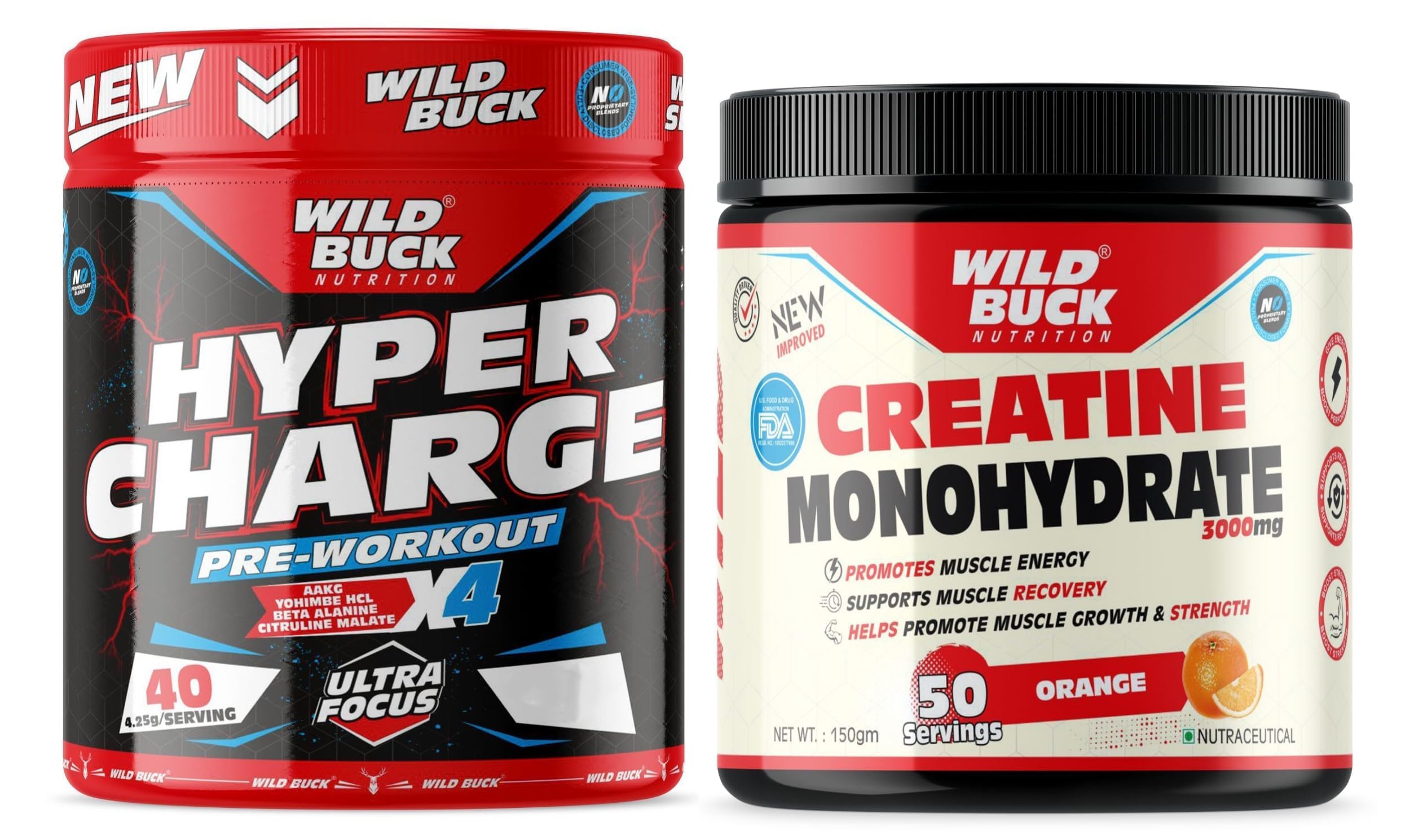 The WILD BUCK Hyper Charge X4 Pre-workout : Designed to elevate your energy focus power output and performance levels it will help you power through every training session and prime you for harder heavier and more productive lifts. With so many ingredients dedicated to powering up your results The WILD BUCK Pre-workout is in a league of its own. Stop leaving gains on the table. Start making the most of your workouts today with The WILD BUCK Pre-workout the lifting partner youâve been looking for. Serving: For Insane Workout - Take One Scoop with 150-200ml of water and drink 10-20 minutes before action. For Hardcore Workout - Take half Scoop with 150-200ml of water and drink 10-20 minutes before action. Creatine has become one of the most popular sports supplements among professional and amateur athletes. In the body creatine is converted to creatine phosphate which helps to fuel skeletal muscles and provides support for immediate energy products during high-intensity workouts. Creatine may very well be the single most heavily researched sports supplement available today. Creatine is a key nutrient that occurs naturally in the body and found in some foods. Creatine functions as an energy source in your muscle cells helping to increase strength and reduce fatigue during intense training.