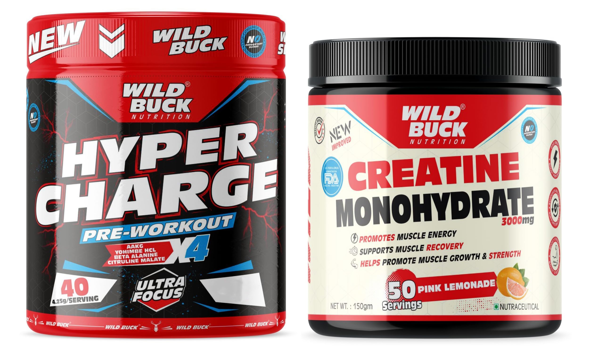 The WILD BUCK Hyper Charge X4 Pre-workout : Designed to elevate your energy focus power output and performance levels it will help you power through every training session and prime you for harder heavier and more productive lifts. With so many ingredients dedicated to powering up your results The WILD BUCK Pre-workout is in a league of its own. Stop leaving gains on the table. Start making the most of your workouts today with The WILD BUCK Pre-workout the lifting partner youâve been looking for. Serving: For Insane Workout - Take One Scoop with 150-200ml of water and drink 10-20 minutes before action. For Hardcore Workout - Take half Scoop with 150-200ml of water and drink 10-20 minutes before action. Creatine has become one of the most popular sports supplements among professional and amateur athletes. In the body creatine is converted to creatine phosphate which helps to fuel skeletal muscles and provides support for immediate energy products during high-intensity workouts. Creatine may very well be the single most heavily researched sports supplement available today. Creatine is a key nutrient that occurs naturally in the body and found in some foods. Creatine functions as an energy source in your muscle cells helping to increase strength and reduce fatigue during intense training.