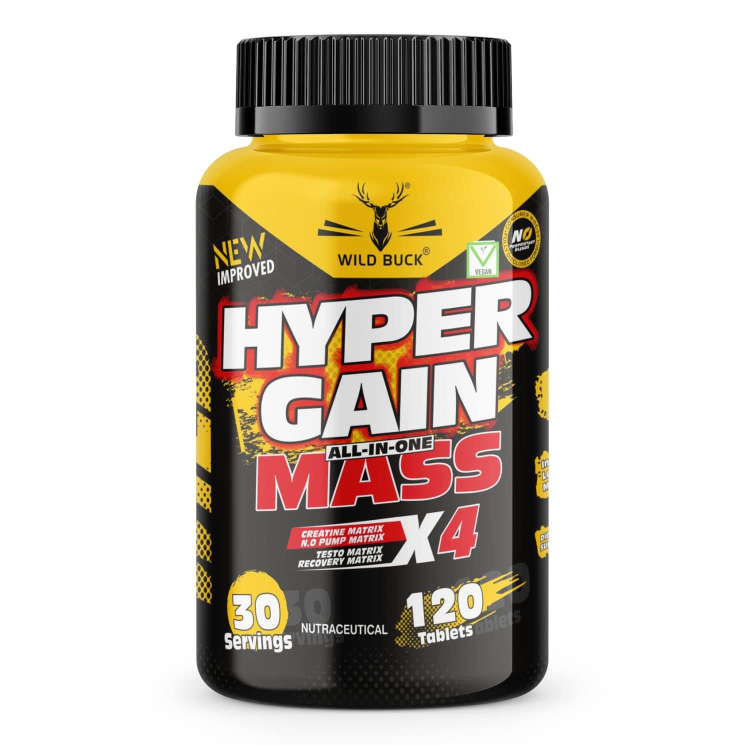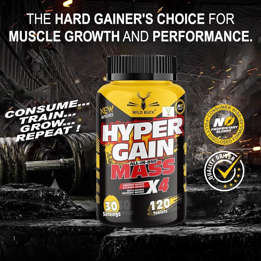 Wild Buck's Hyper Gain Mass is formulated in order to help athletes and body builders to achieve natural anabolic state. It helps Individuals to increase up to 15 lbs of lean muscle mass in 4 weeks. It gives 7X more anabolic than testosterone. It helps increases muscle hardness and strength. it gives zero conversion to estrogen. It helps improves muscle definition and increases muscle pumps.'. It also helps In muscle protein synthesis.