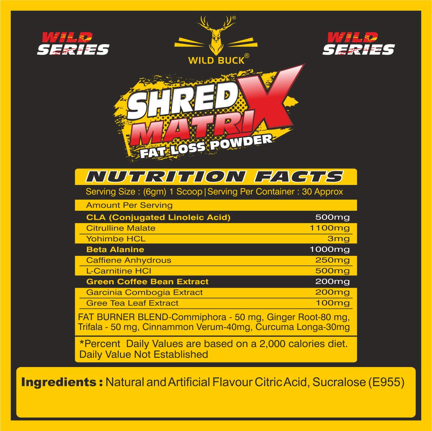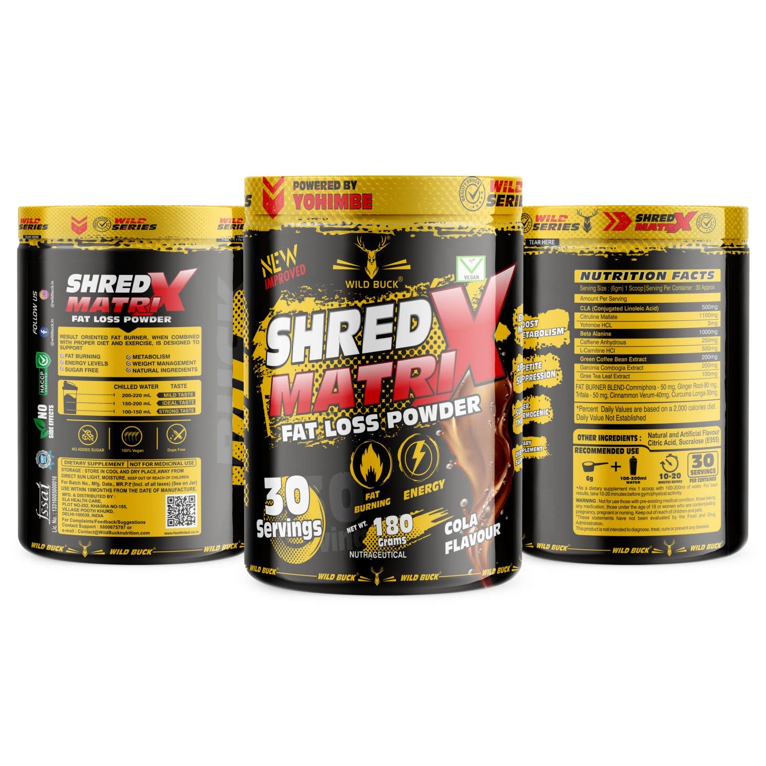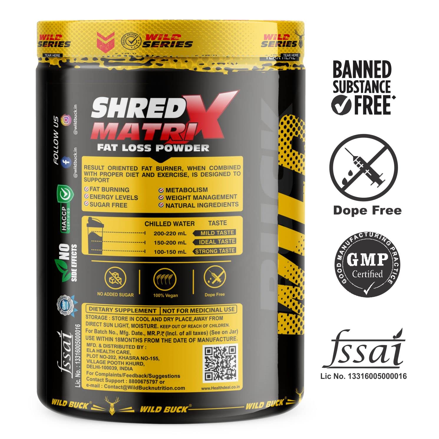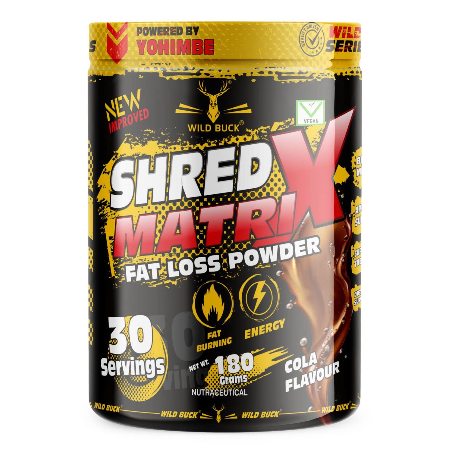 WILD BUCK SHRED MATRIX Fat Loss Powder | Keto Freindly Fat Burner | Helps in Weight Loss | Boosts Metabolism With Natural Ingredients Zero Sugar Free Shaker [30 Servings 180g Cola Flavour]