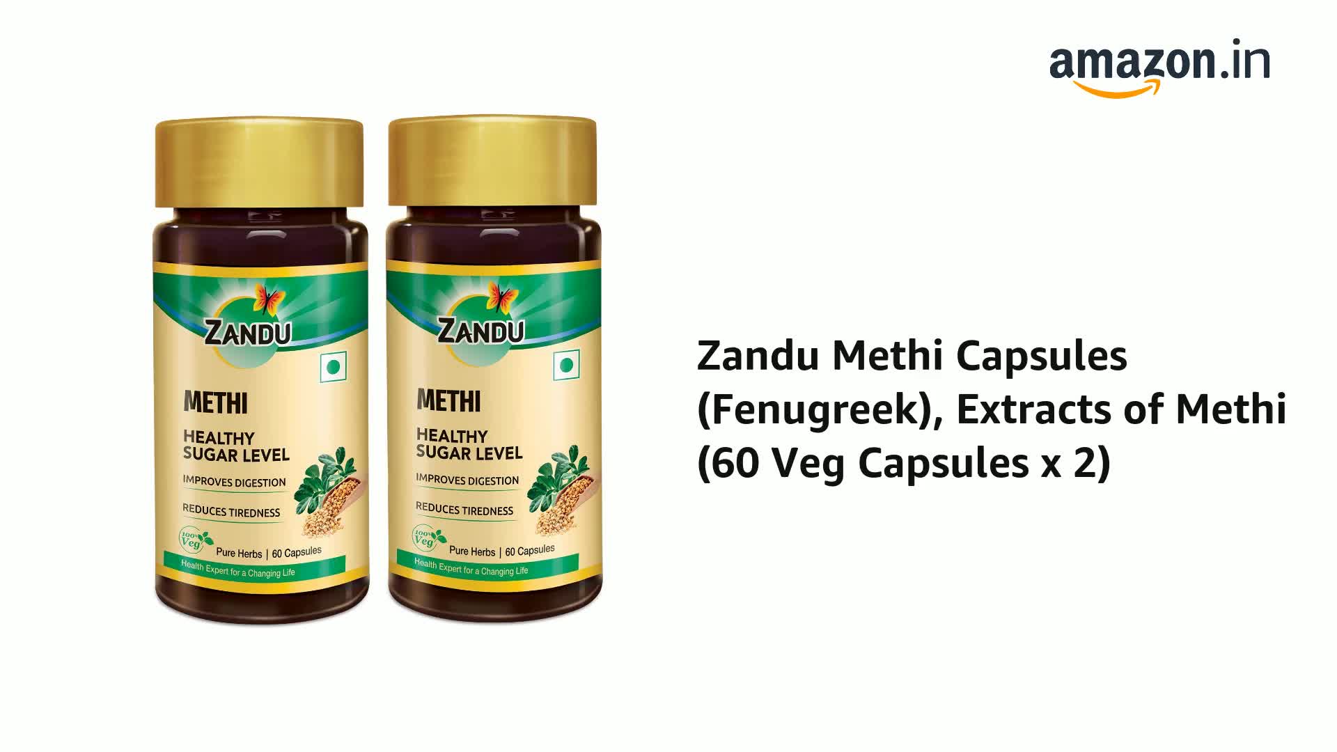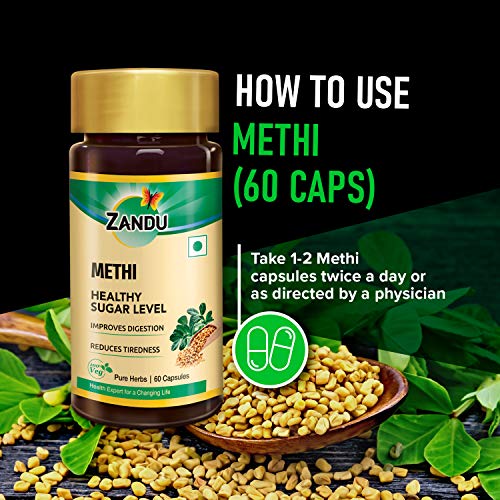 HomeHealth & PersonalDiet & NutritionHealth SupplementsZandu Methi Capsules (Fenugreek), Extracts of Methi known for High Content of Fibers and Antioxidants, Helps to Flush out Toxins from Body & Helps Maintain Healthy Sugar Levels - (60 Veg Capsules)
