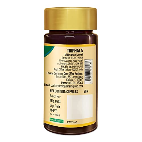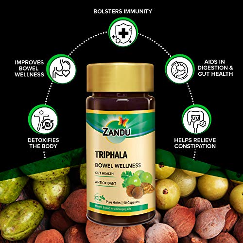 Zandu Triphala Caps., Supports Bowel Wellness & Healthy Gut, Helps to Boost Immunity & Useful for Digestion, Antioxidant Properties - 90 Veg Caps.