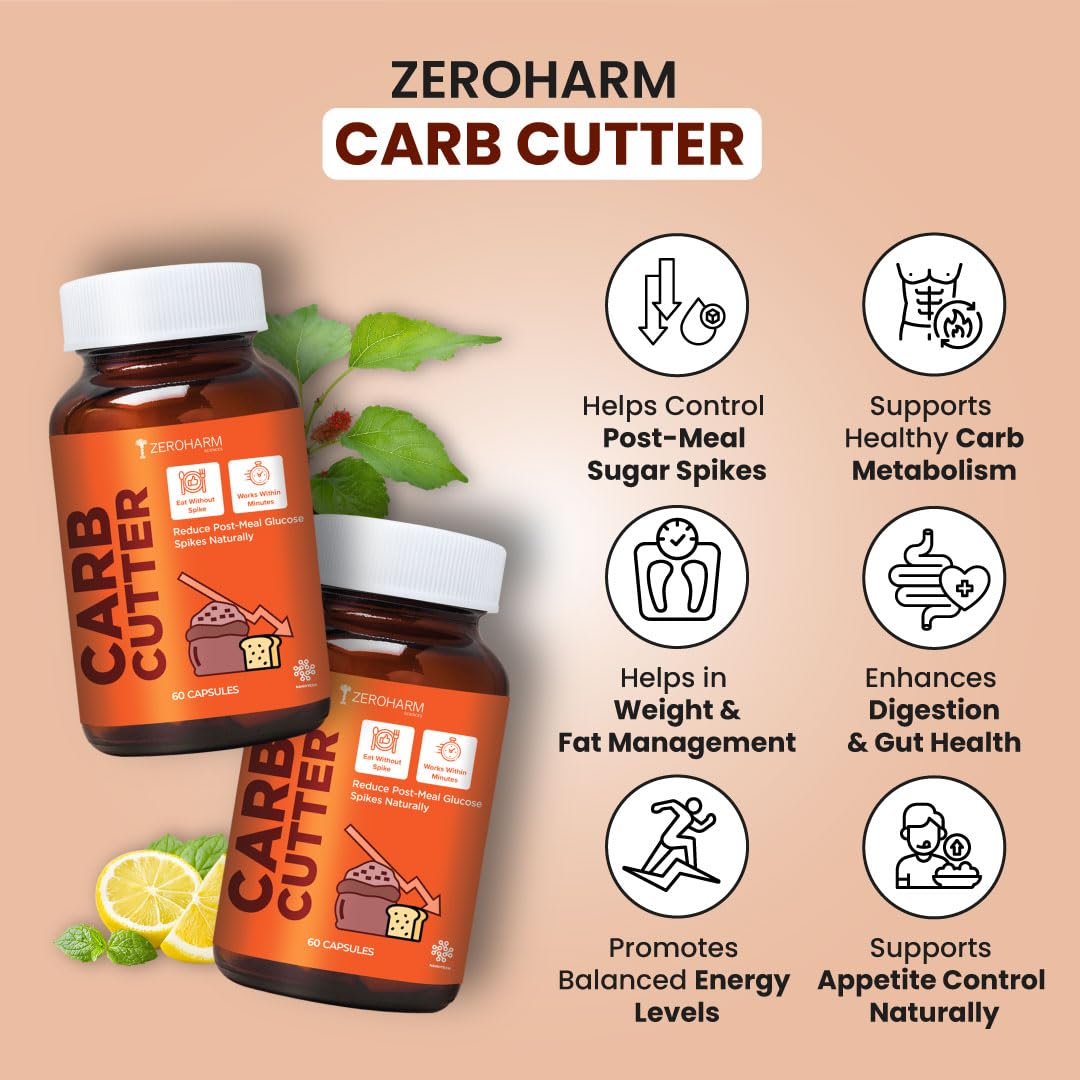 SUPPORTS CARB METABOLISM & ENERGY BALANCE - Crafted with a synergistic herbal blend ZEROHARM Carb Cutter supports the bodyâs natural ability to metabolize carbohydrates efficiently. An ideal companion for those aiming to manage energy digestion and heal