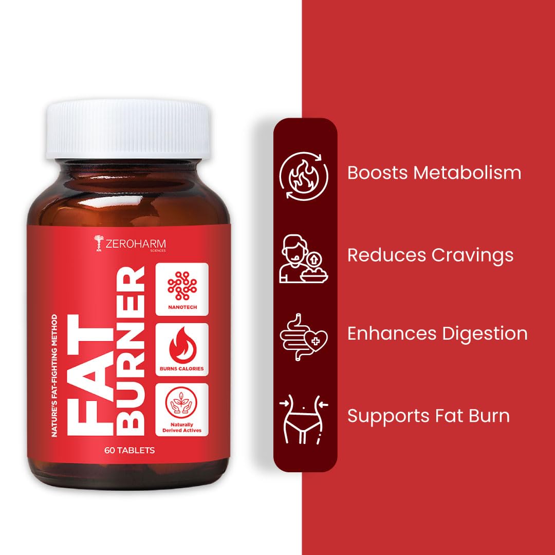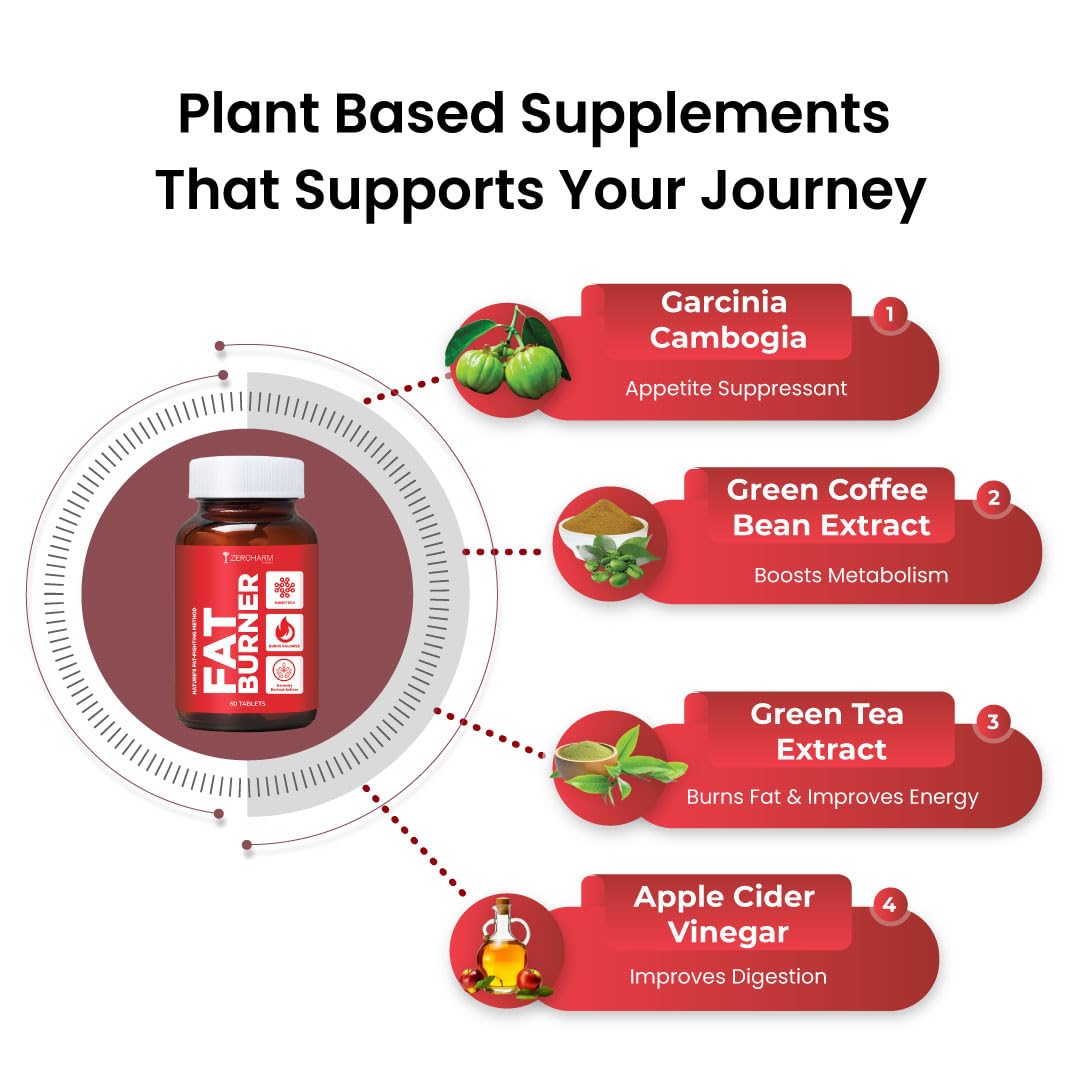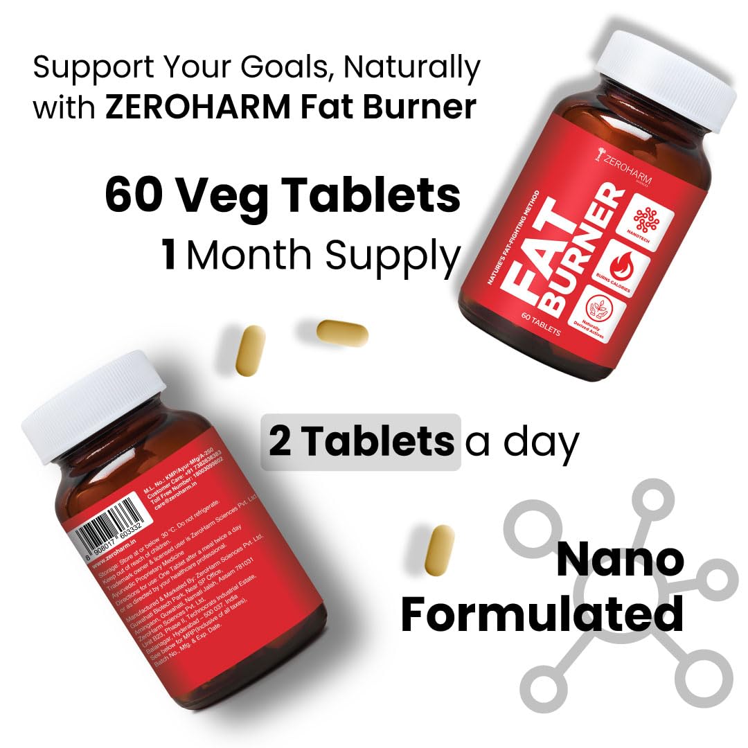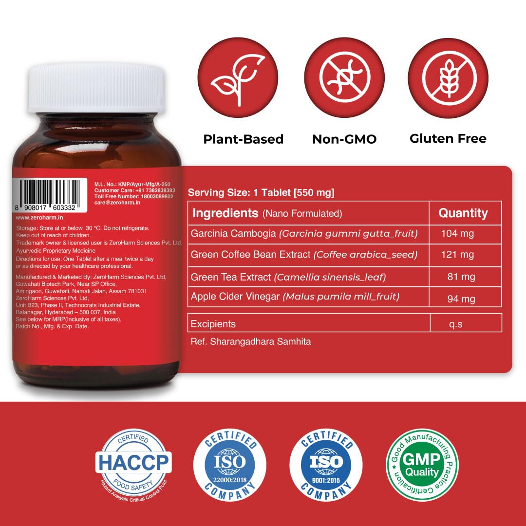 ZEROHARM Fat Burner Tablets - Weight Management Supplements Men & Women - Garcinia Cambogia Green Coffee Green Tea Apple Cider Vinegar - Boosts Metabolism & Controls Cravings - 60 Tablets - 3 Pack