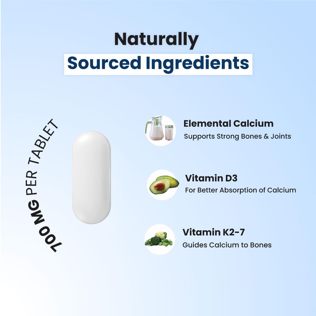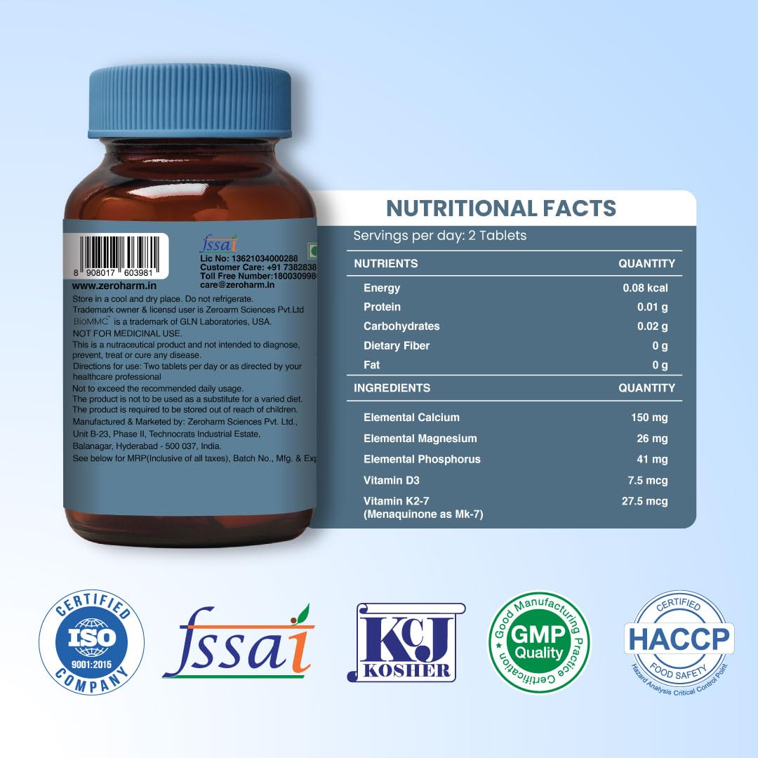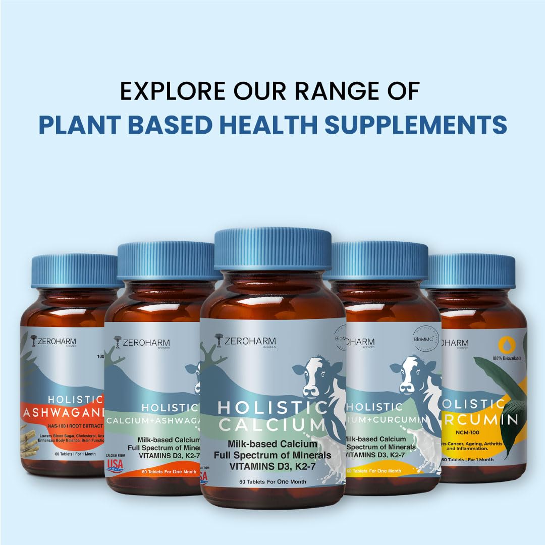 ZEROHARM Holistic Calcium Tablets High Absorbption Milk-Based Calcium Supplement with Vitamin D3 K2-7 Magnesium Phosphorous Supports Bone Strength & Joint Health For Men & Women 120 Tablets
