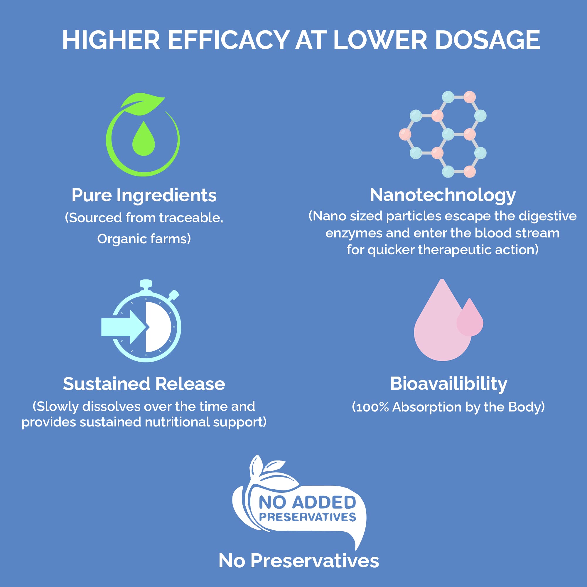 100% BIOAVAILABILITY: Two tablets of HoloDiabetis per day or as directed by a health care professional. Our patent-pending formulation process and nanotechnology ensure 100% Bioavailability and 90 times higher efficacy even with a much lower dosage.