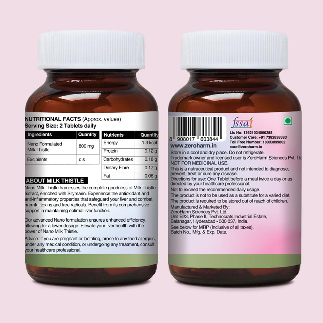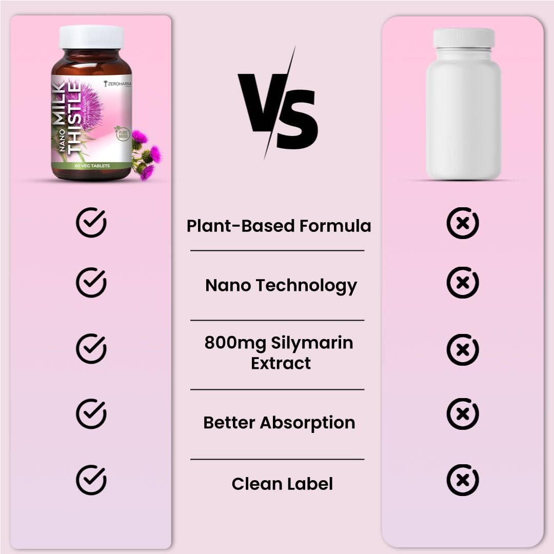 ZEROHARM Nano Milk Thistle - 800 mg with 80% Silymarin Extract (30:1) - Liver Detox Supplement for Men & Women - High Absorption - Natural Detoxification - 60 Veg Tablets
