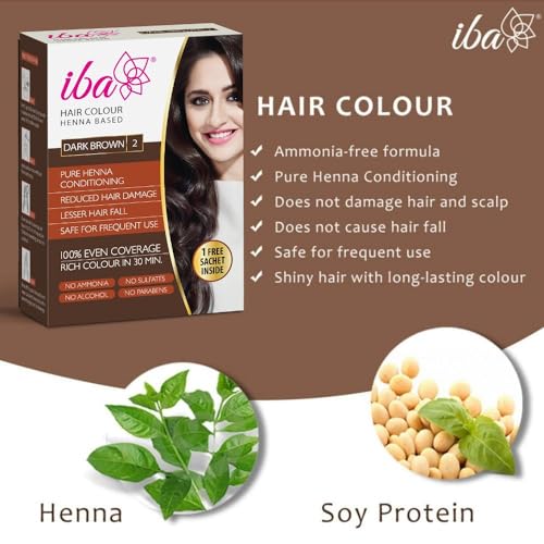 Iba Hair Colour for Women - Dark Brown, 70g | 100% Pure Henna Based Powder Sachet | Natural Hair Colour & Long Lasting with Conditioning Formula | Reduced Hair Fall & Hair Damage | Shine & Nourish Hair | Free from Ammonia and Other Harmful Chemicals | Her