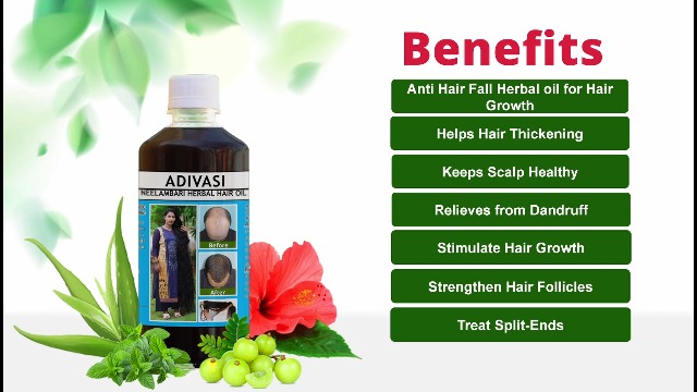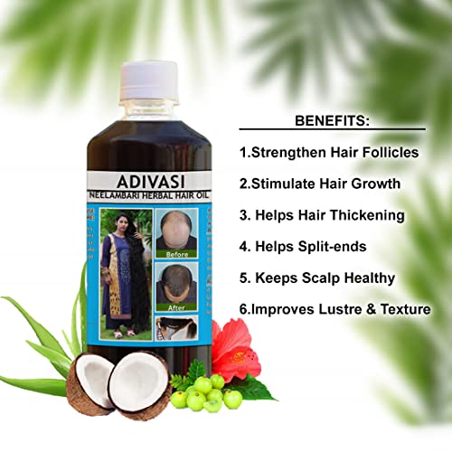 Adivasi Neelambari Herbal Hair Oil is presented by Adishakthi herbal products. It contains 101 types of pure herbs and roots for example Bhringaraj Brahmi Amla Aloe vera Hibiscus flower etc. This is prepared using 4 different types of oil coconut oil castor oil badam oil and amla's oil. If we talk about the result we can see the result just in 4 weeks. After preventing the hair fall it helps to grow long hairs and transforms into smooth and shining hairs. o it shall help to remove dandruff. Adivasi neelambari herbal Hair Oil is purely made from natural herbs available in our forest using ancient methods. It gives results and doesn't contain any type of side effects.