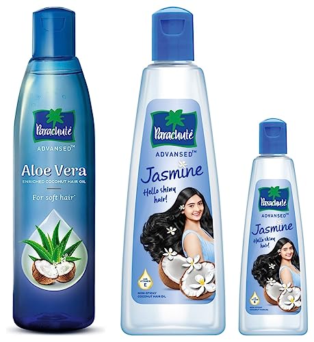 Parachute Advansed Aloe VeraEnriched Coconut Hair OilFor Soft & Strong Hair 400 mlThe product comes in safe package. The product will be an excellent pick for you.Parachute Advansed JasmineNon Sticky Coconut Hair OilFor ShinyStrong HairCoconut Hair Oil400 ml with Free 90 ml packIt's time for your hair to take the spotlight and bring out its shine! Coconut oil enriched with goodness of Vitamin E & jasmine extracts Parachute Advansed Jasmine coconut hair oil gives your hair the strength and nourishment it needs while leaving it soft silky and shiny. What's more this light non-sticky hair oil comes with the fragrance of jasmine for a soothing pleasant experience and Vitamin E which improves your scalp and hair health .Nourish your hair with this advansed hair oil to fight everyday damage and get a strong silky hair that shines all day long. For best results apply parachute advanced jasmine coconut hair oil in the night and wash it off in the morning. That gives the oil time to go deep into the roots and nourish your hair from within. And the best part of this advansed hair oil is that it is so light and non-sticky that it's perfect to lightly apply in your hair after a hair-wash. This advansed hair oil is just the recipe for your hair that looks nourished and endures a healthy shine all day long.