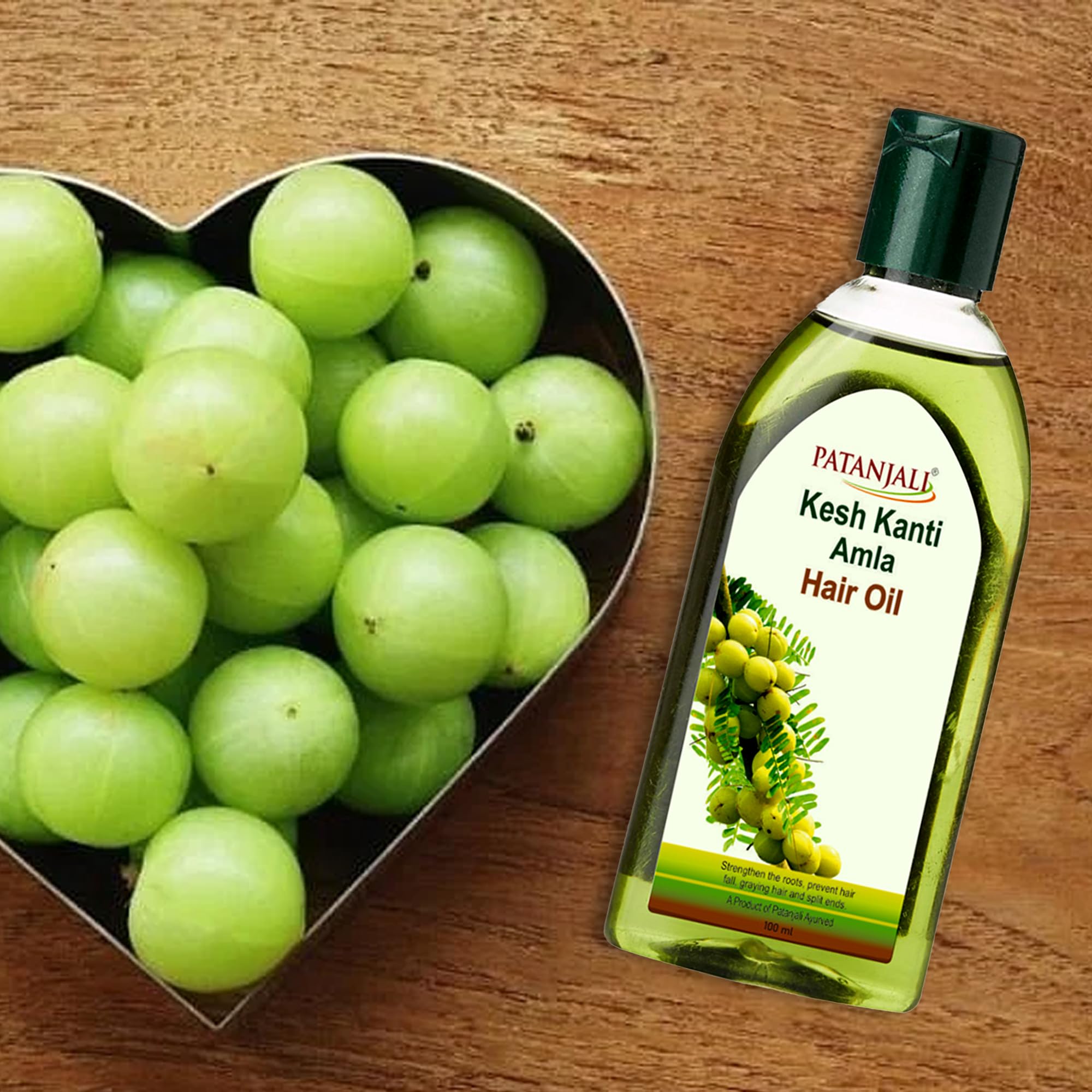 Patanjali Kesh KantiAmla Hair Oil brings life and vitality to hair turned dull and dry by chemical cleansers. The Ayurvedic formulation strengthens roots revitalizes lifeless hair and prevents hair fall greying and split ends. The blend mixes the strengthening and softening properties of jaitoon (olives) and sunflower oil with amla a rich source of vitamin C. The oil naturally conditions frizzled locks and reduces hair fall that comes from breakage and brittle strands.